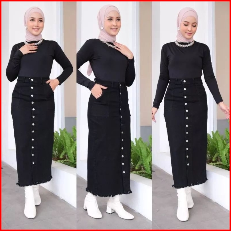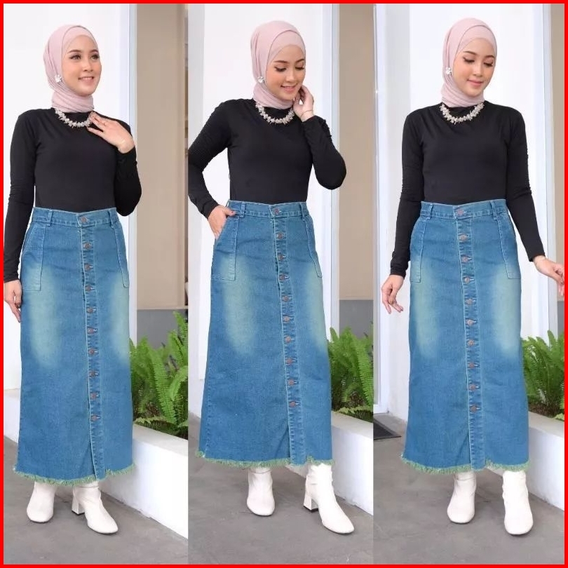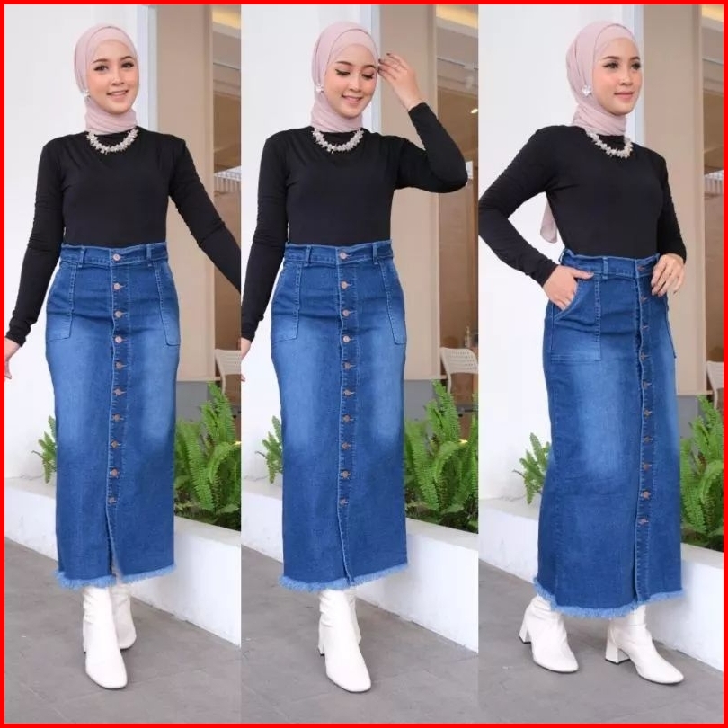 Rok Span Jeans Panjang Gisca Kancing Depan Rok Jeans Panjang Rok Span Panjang Rok Kancing Depan Rok Panjang Murah