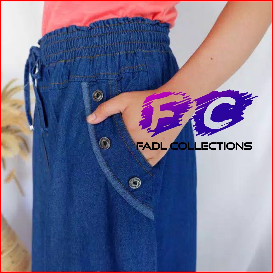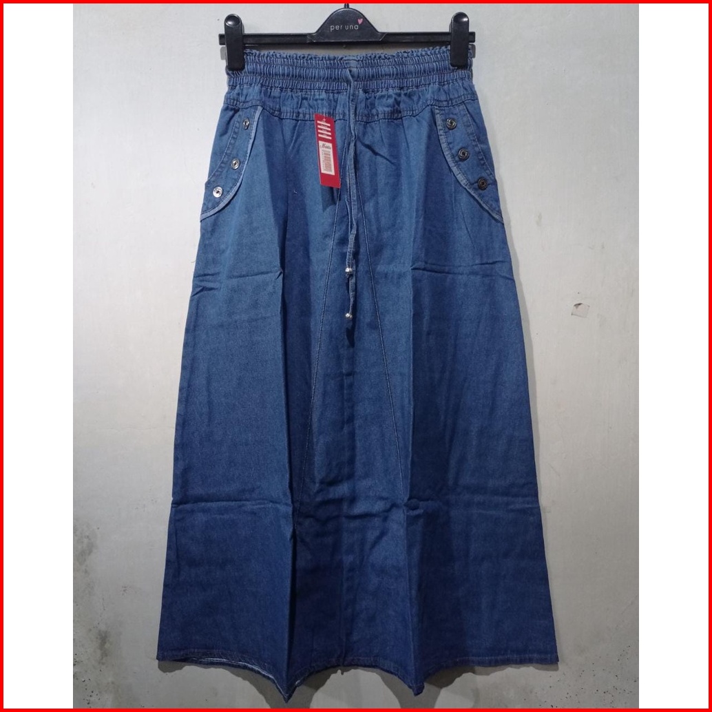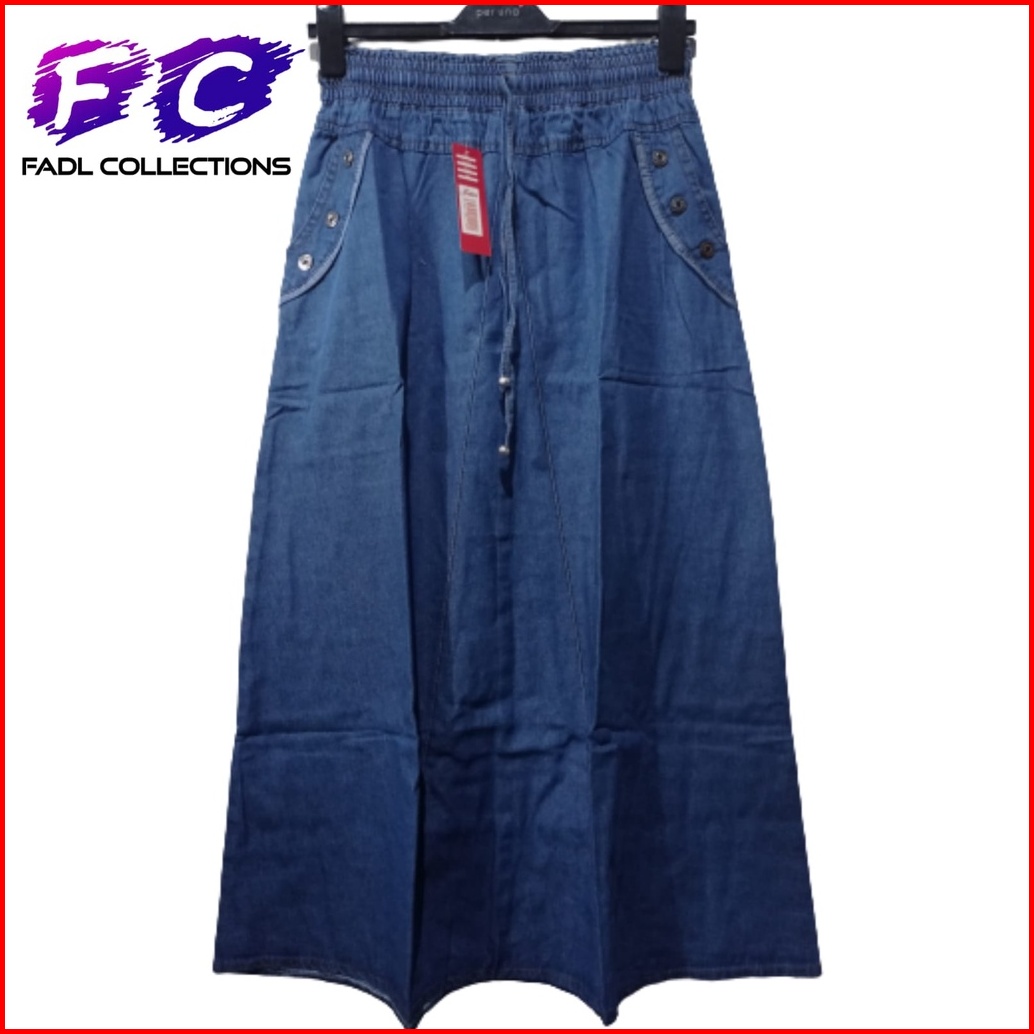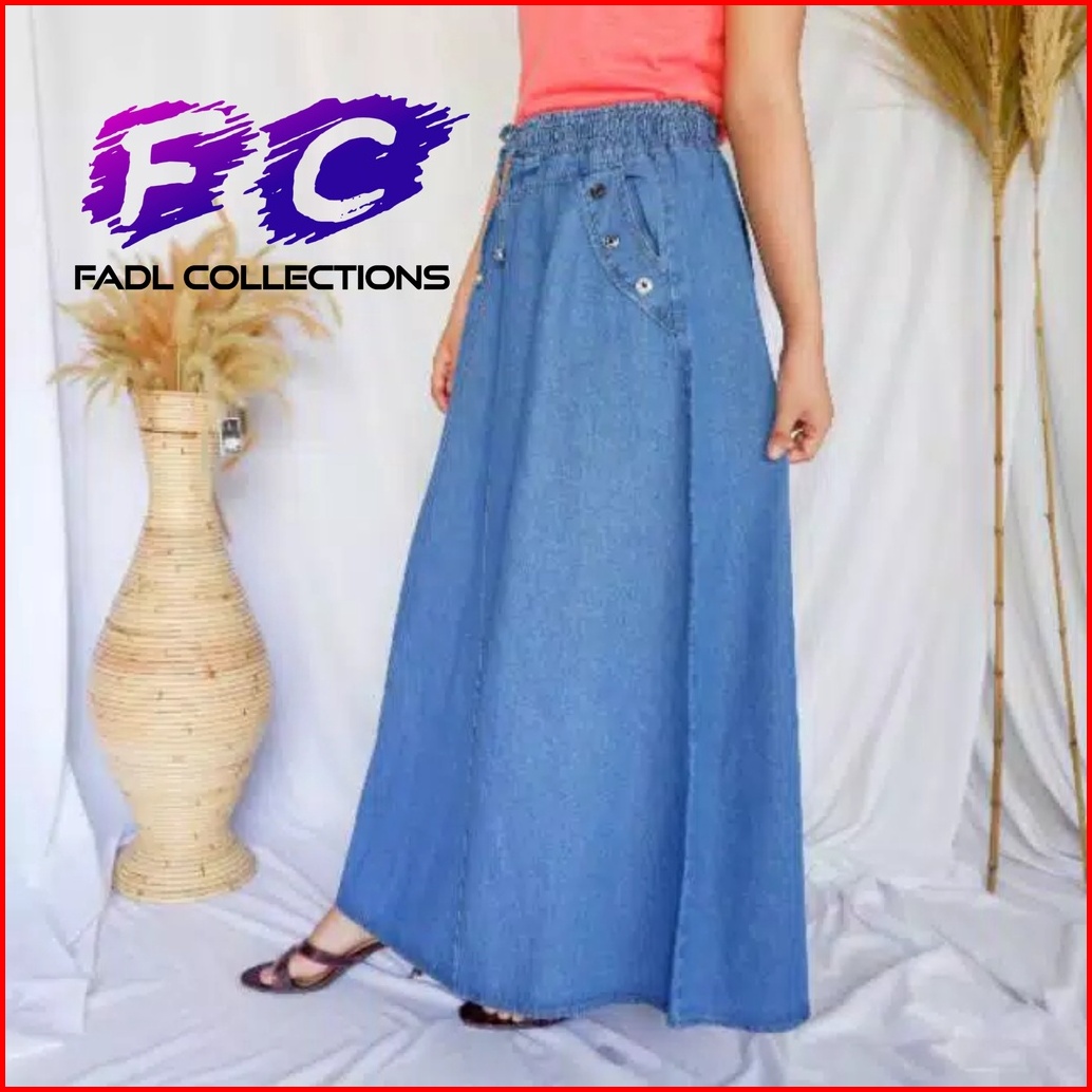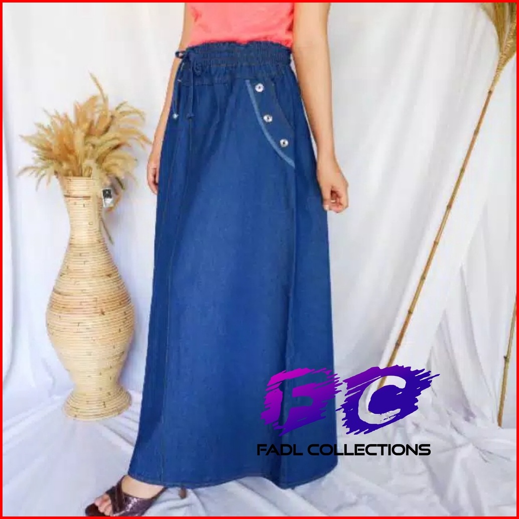 Rok Jeans Polos Span Panjang Jumbo Pakaian Wanita Rok Dewasa Pinggang Karet Elastis Original Produk Anderok Jins Kerja