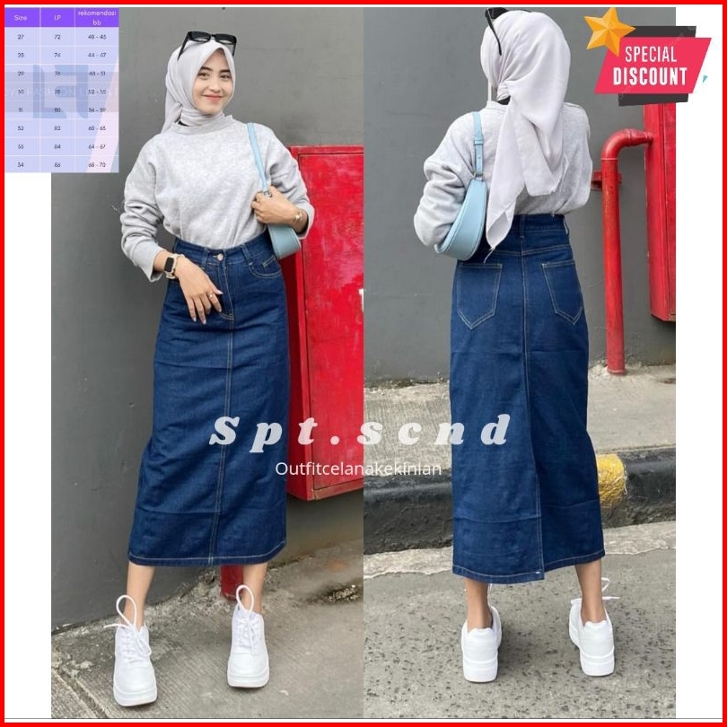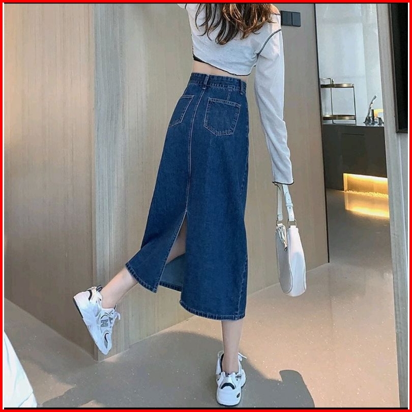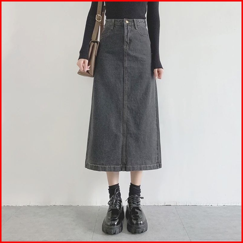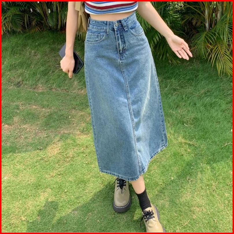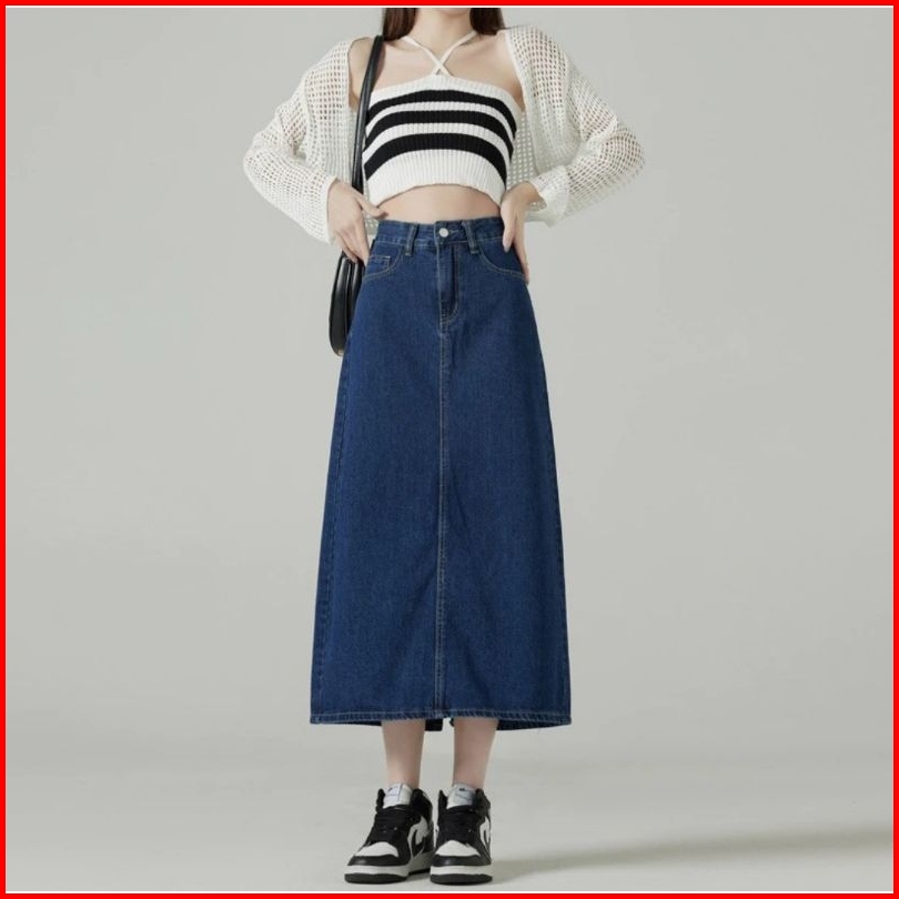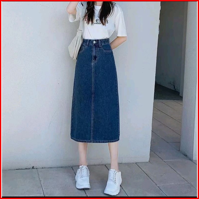 Highwaist Rok Jeans Wanita Panjang 7 8 Model A-line - Basic Skirt Jeans - Rok Jeans Highwaist