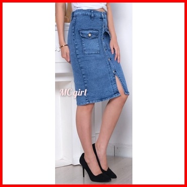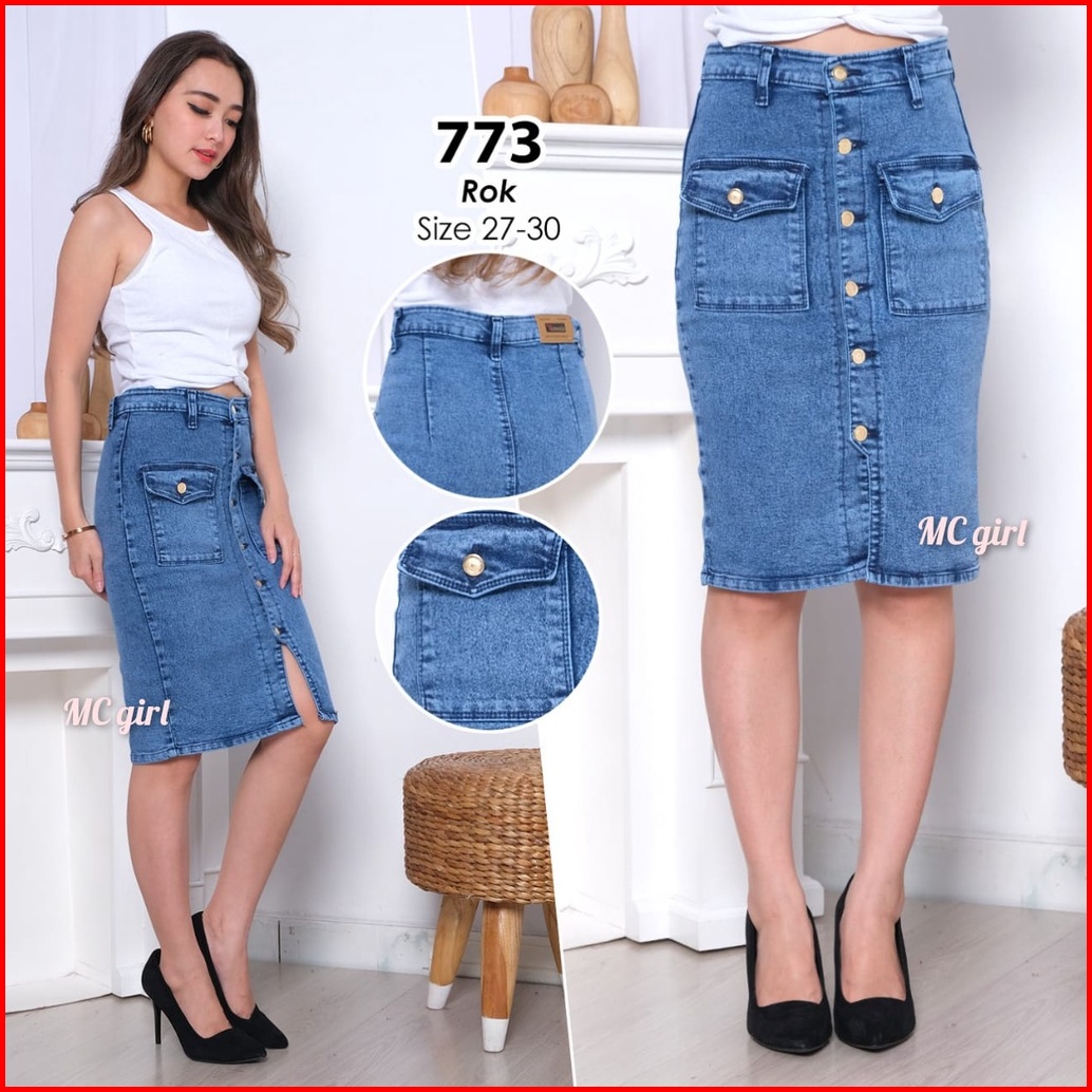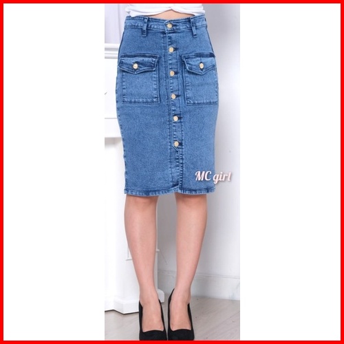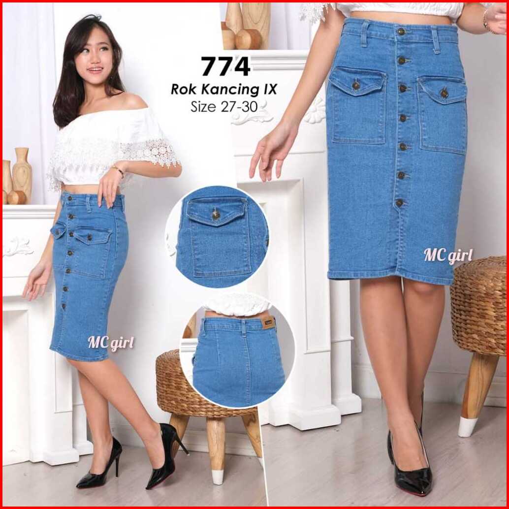 Size 27 - 34 2 Warna Mc Girl - Rok Span Jeans Kancing Depan Kantong Depan Warna Snow Wanita Rok Denim Pendek Full Kancin