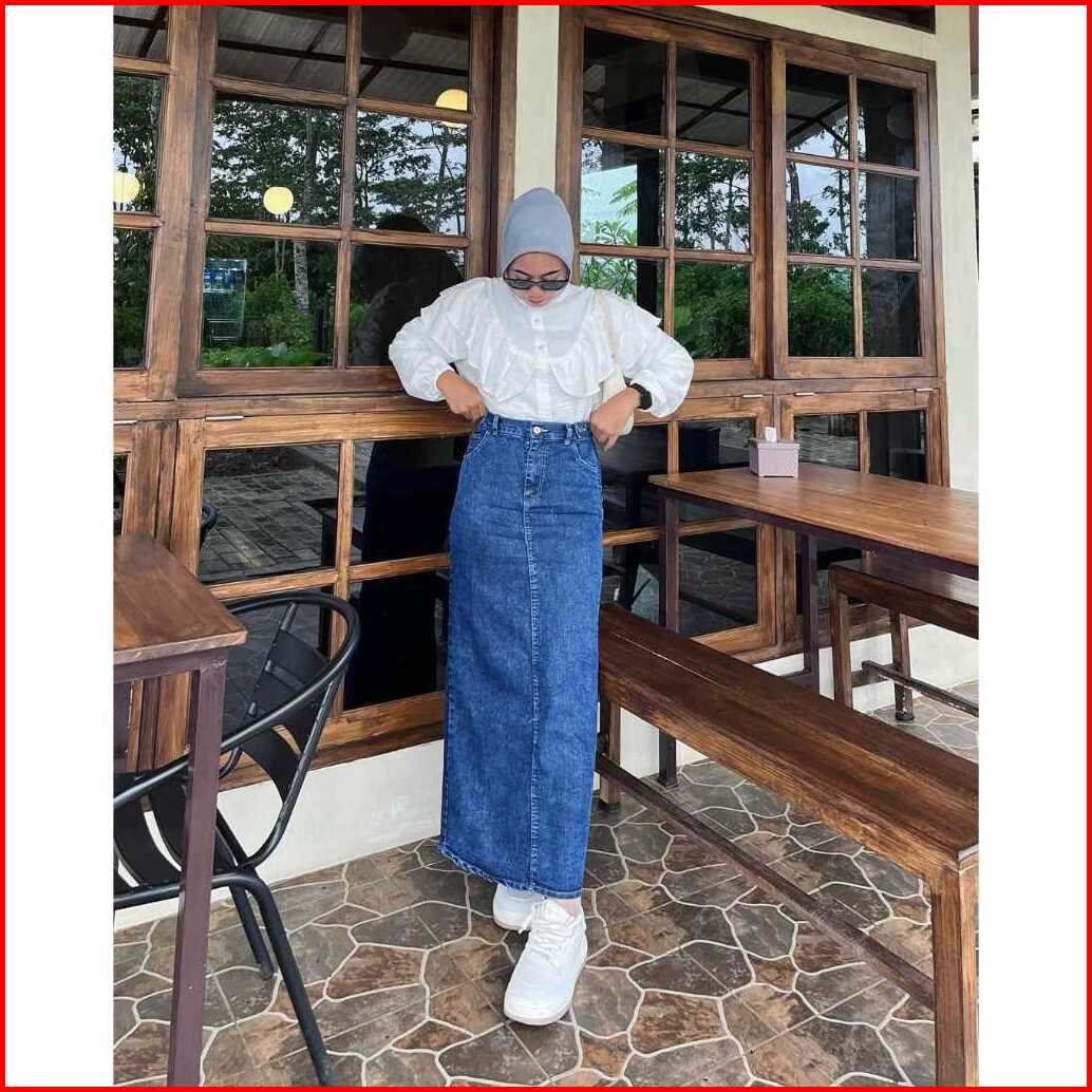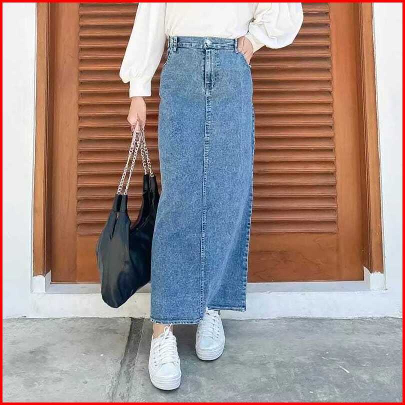 Highwaist Rok Jeans Rok Jeans Panjang Skirt Theana