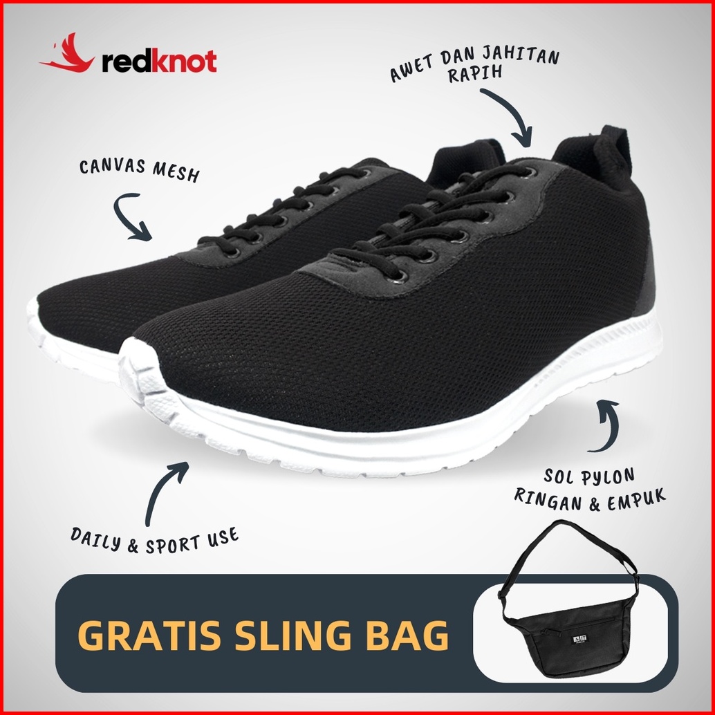 Redknot Expansion Hitam - Sepatu Sneakers Pria Murah Keren Bonus Tas Waistbag Seharga 400rb