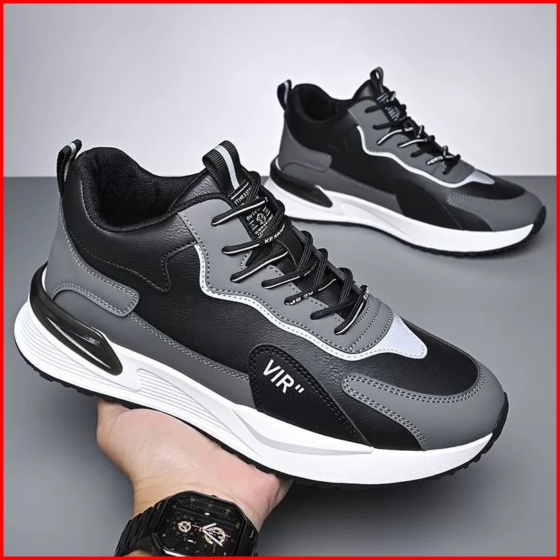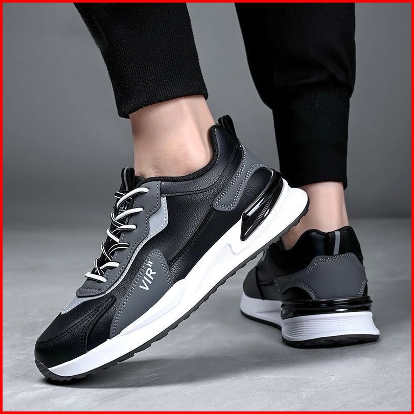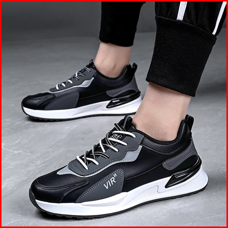 Keeping Sepatu Sneakers Pria Hitam Outdoor Sepatu Sport Kulit Sepatu Olahraga Cowok Kets Shoes Ksr134