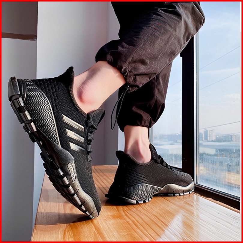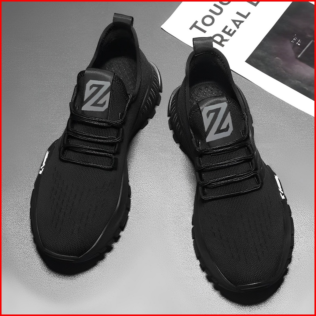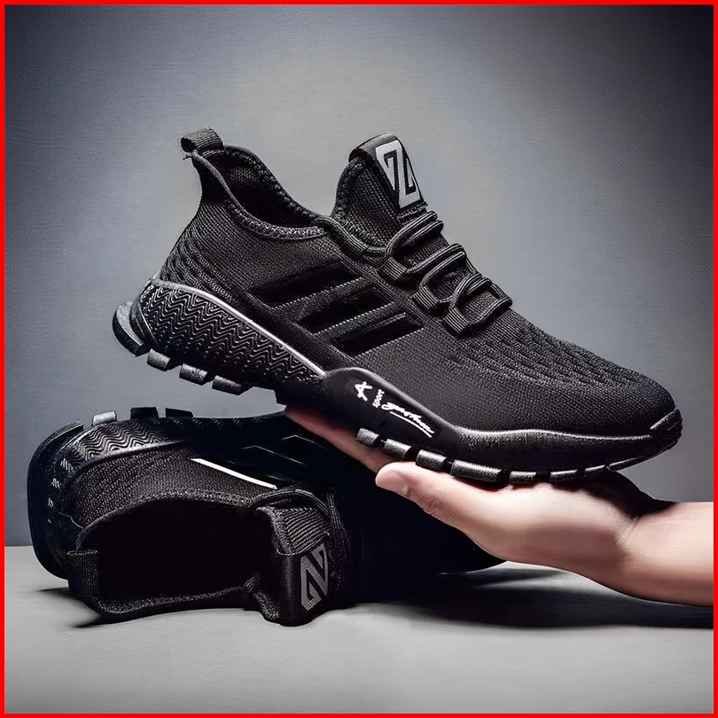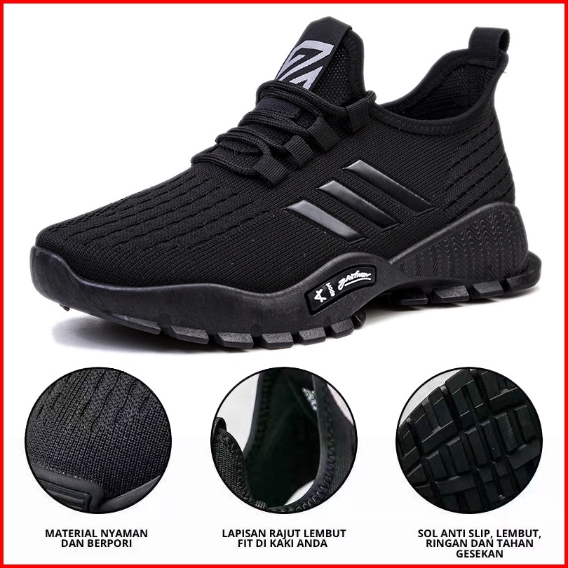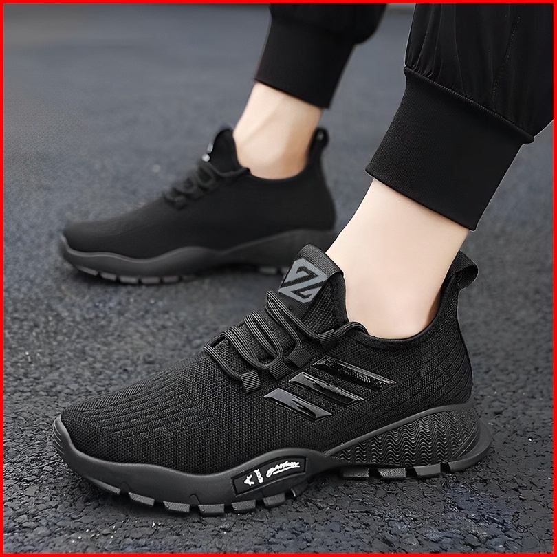 Highland Sepatu Sneakers Pria Hitam Polos Kasual Sepatu Kerja Kuliah Sepatu Olahraga Cowok Mr133