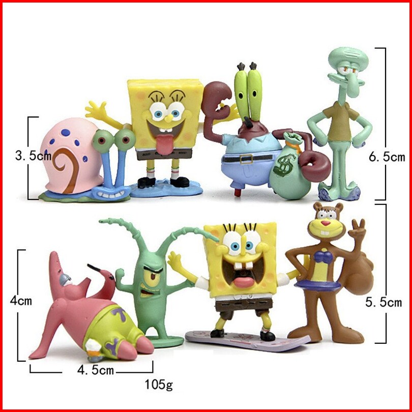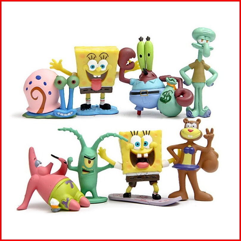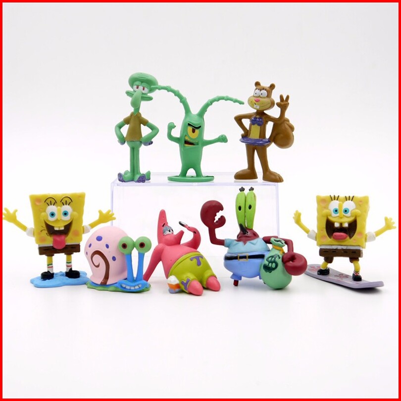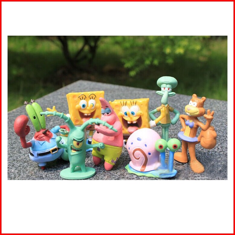 Spongebob Friends Figure Set Isi 8 Miniatur Pajangan Mainan Hiasan Topper Fg42