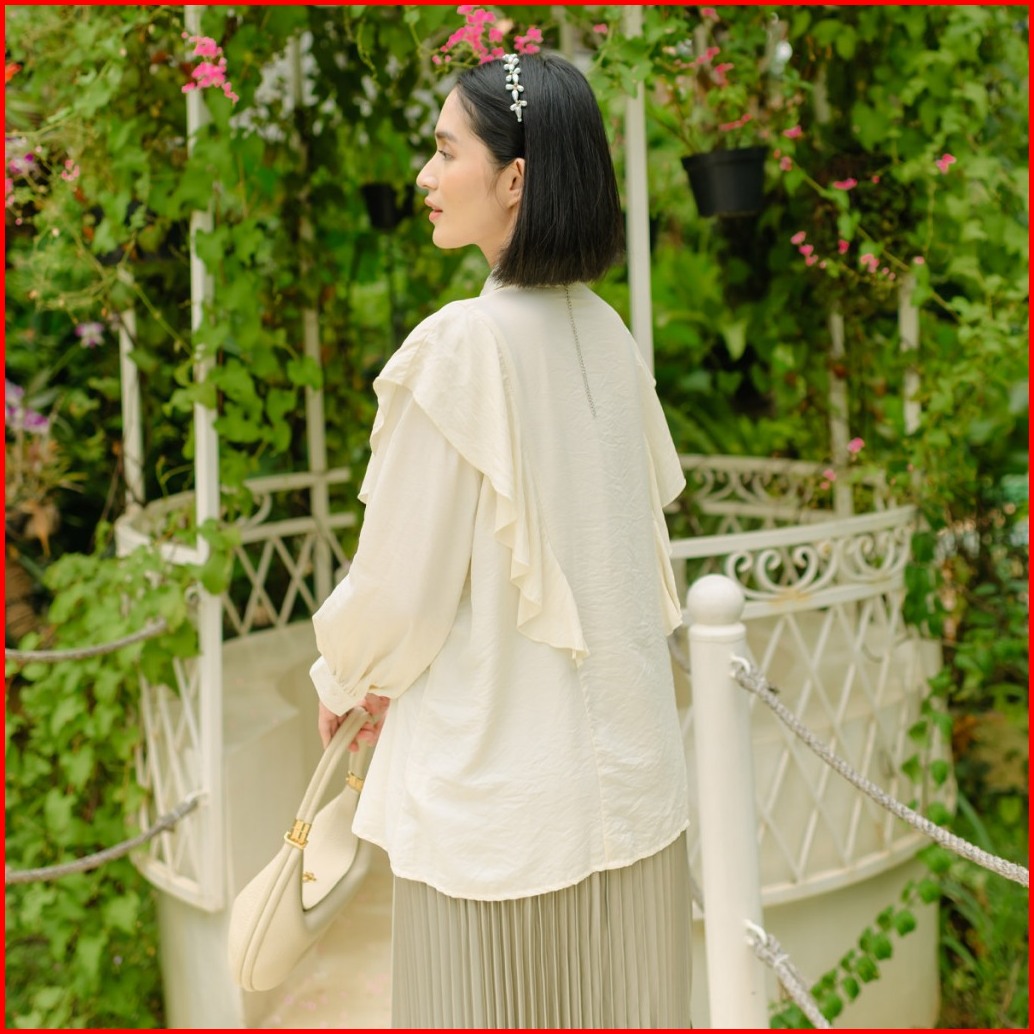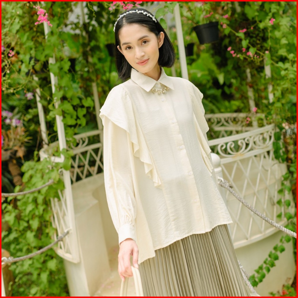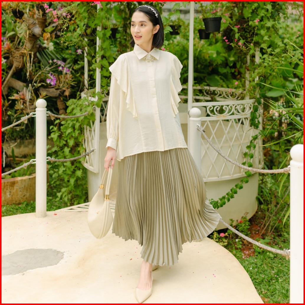 Hijabchic Navisha Cream Top - Atasan Muslim Ruffle Cantik Polos Simple Ramah Busui Terbaru