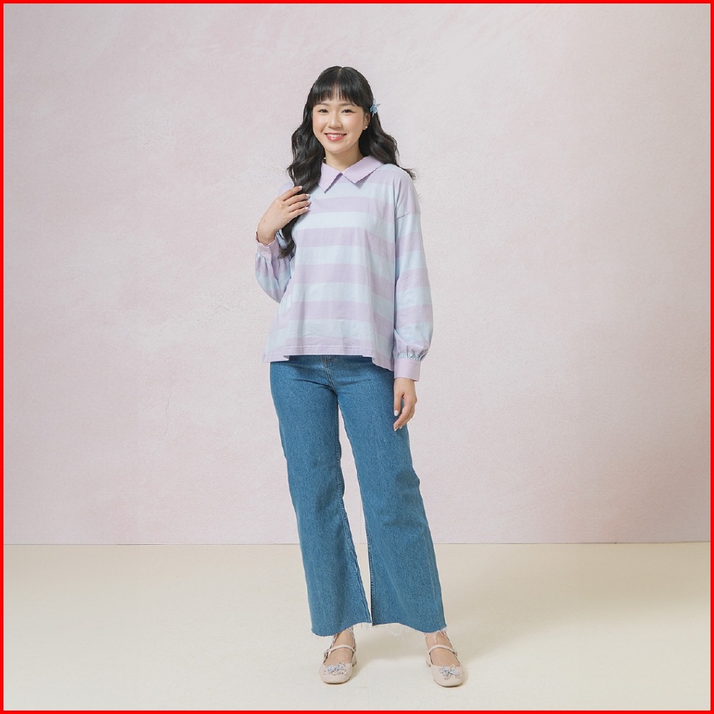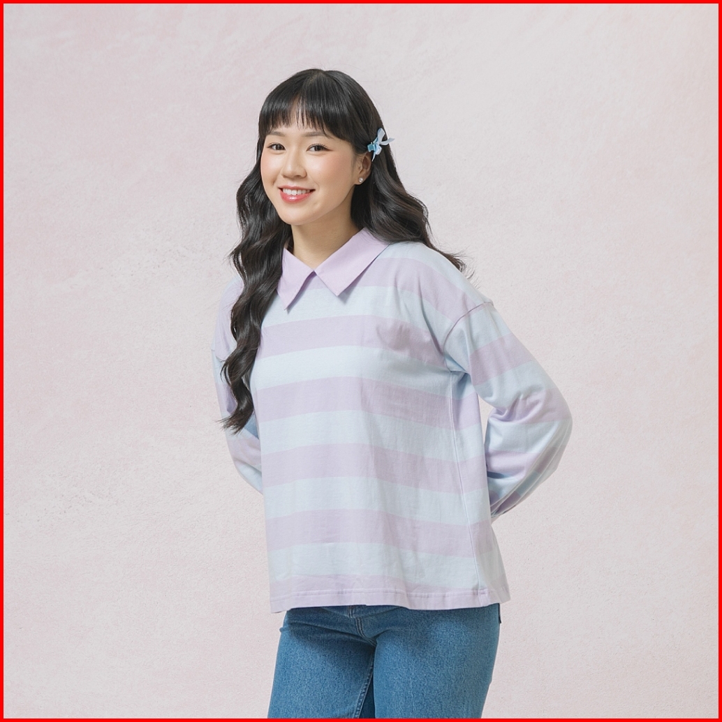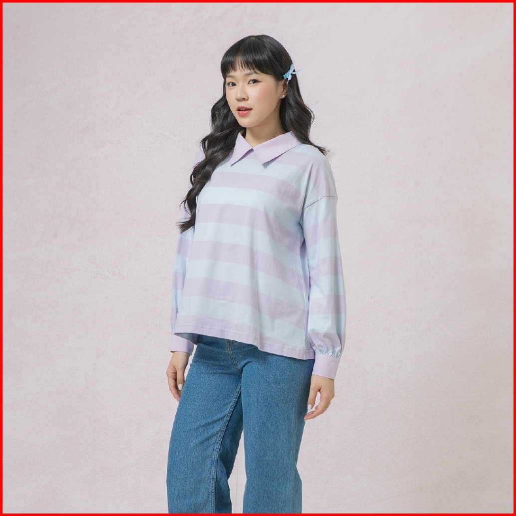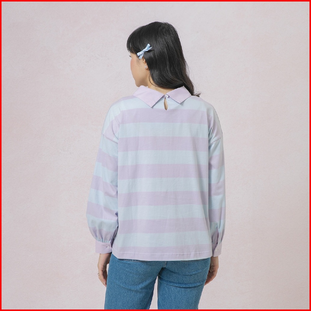 Hijabchic Damia Lilac Blue Top - Atasan Muslim Stripe Daily Simple Lengan Pof Best Seller Terbaru