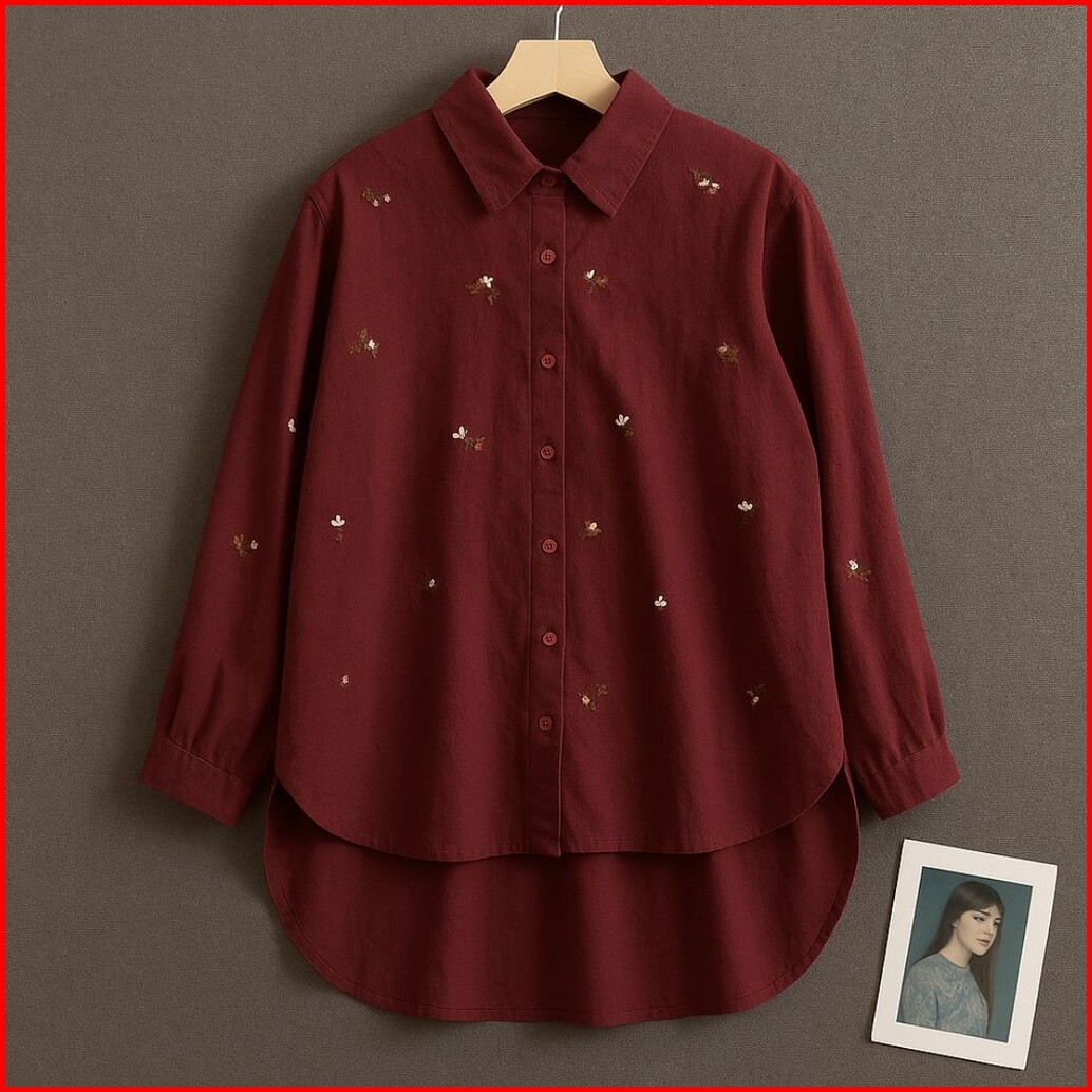 Vallina Outfit - Basic Blouse Atasan Kemeja Oversize Wanita Muslim Matt Linen Rami Ootd Korean Style