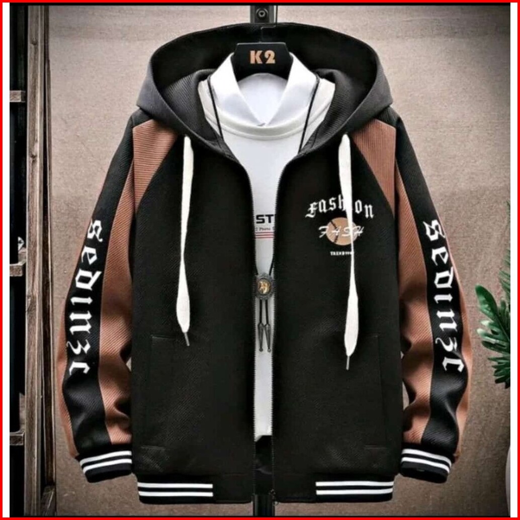 Vallina Outfit - Sedinec Jaket Baseball Hoodie Outerwear Fleece Sablon Tebal Premium Ootd Pria Korean Style