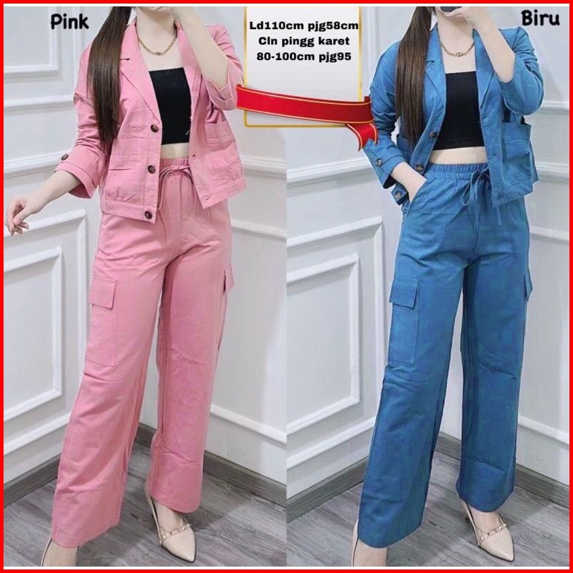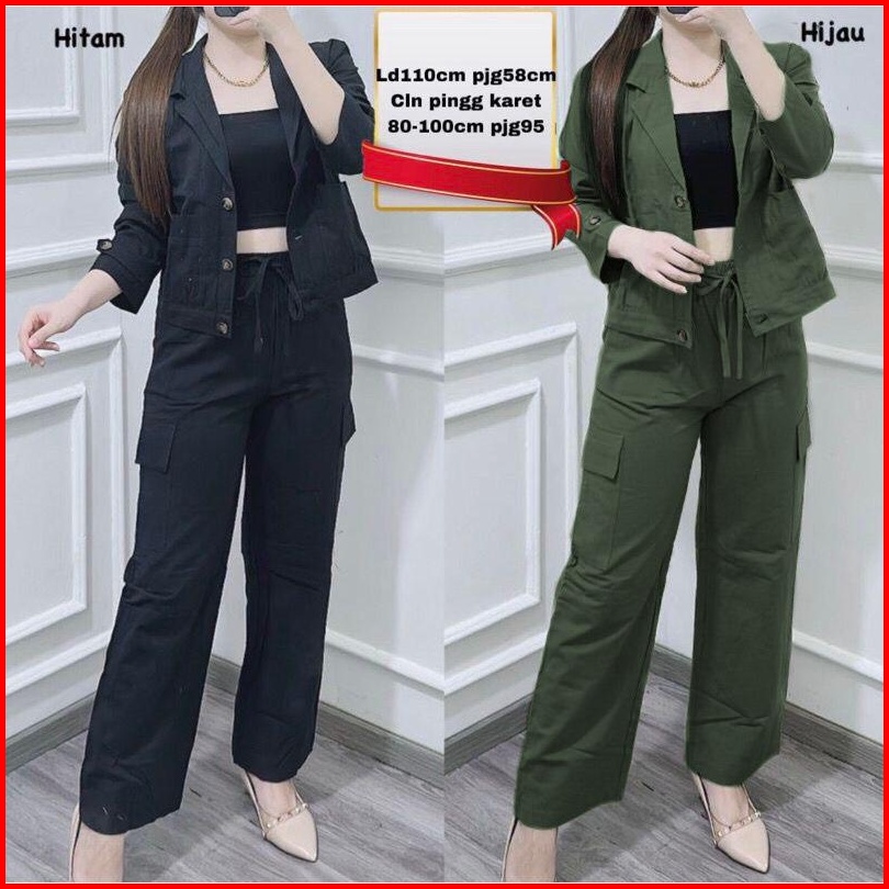 Vallina Outfit - Carla One Set Cargo Setelan Celana Top Button Linen Rami Premium Polos Wanita Remaja Muslim Korean Styl