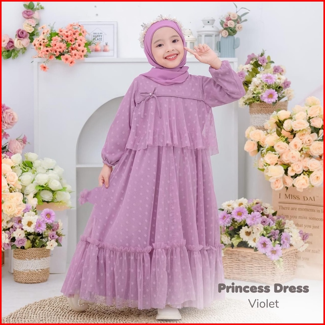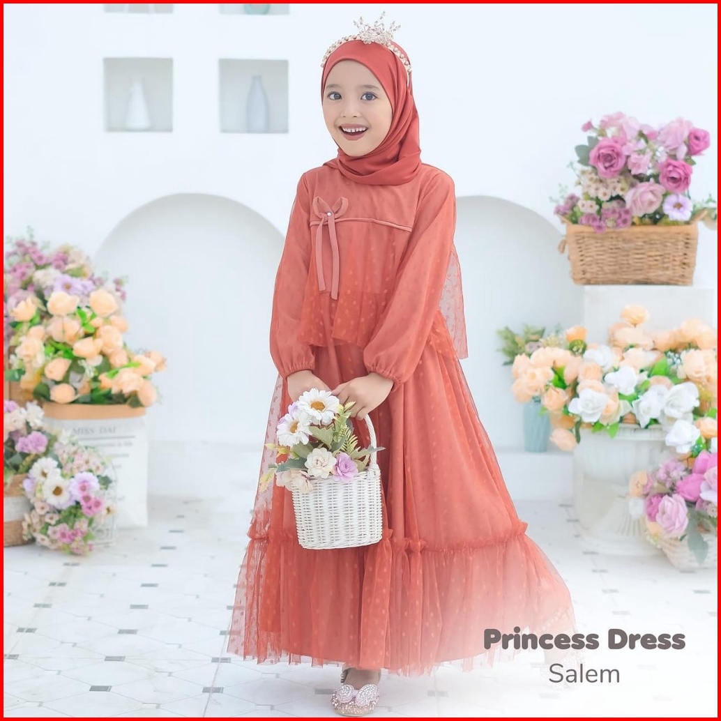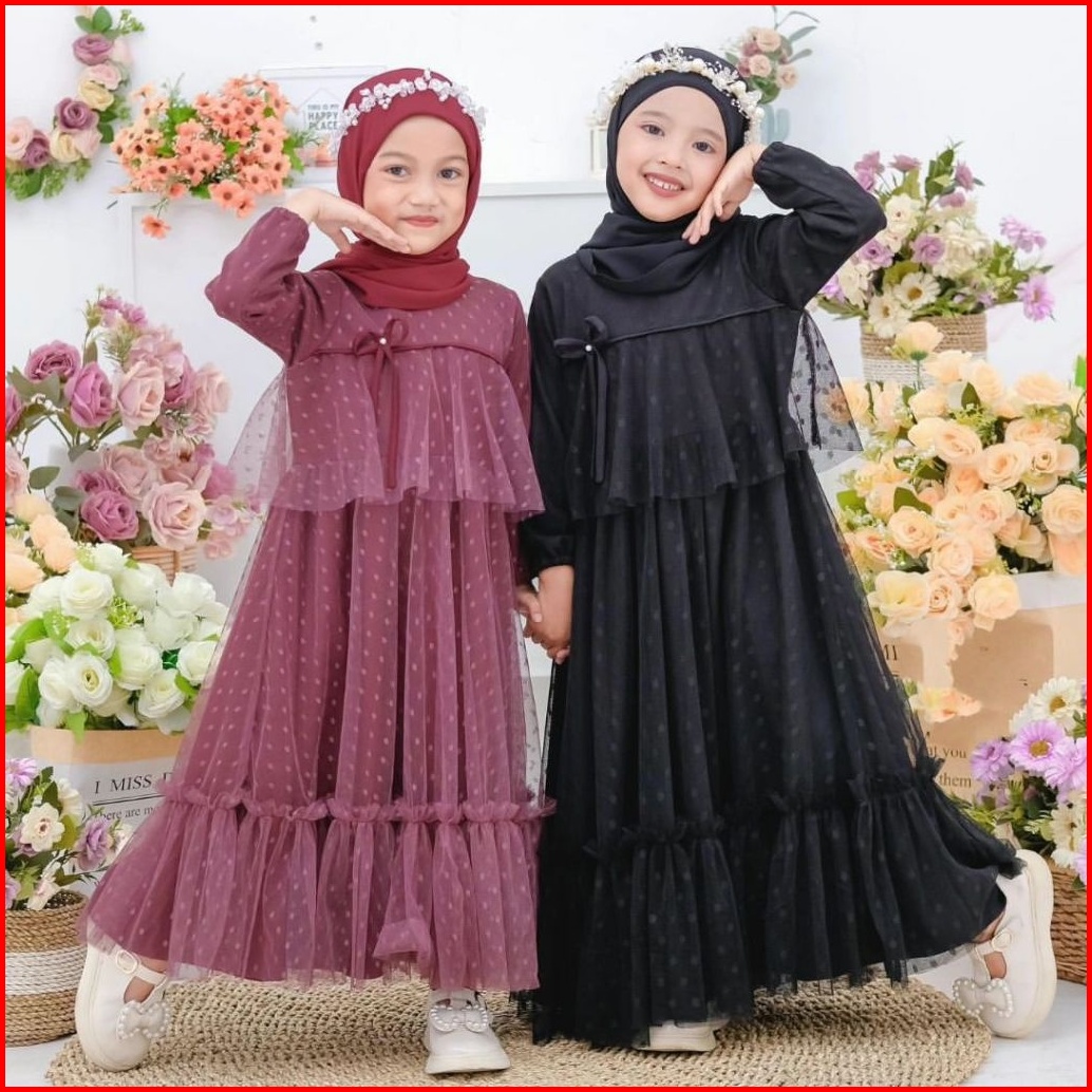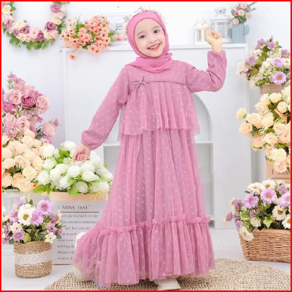 Vallina Outfit - Princess Dress Kids Gamis Anak Perempuan Matt Syakila Mix Tile Dot Premium Lebaran Series 2 - 9 Th