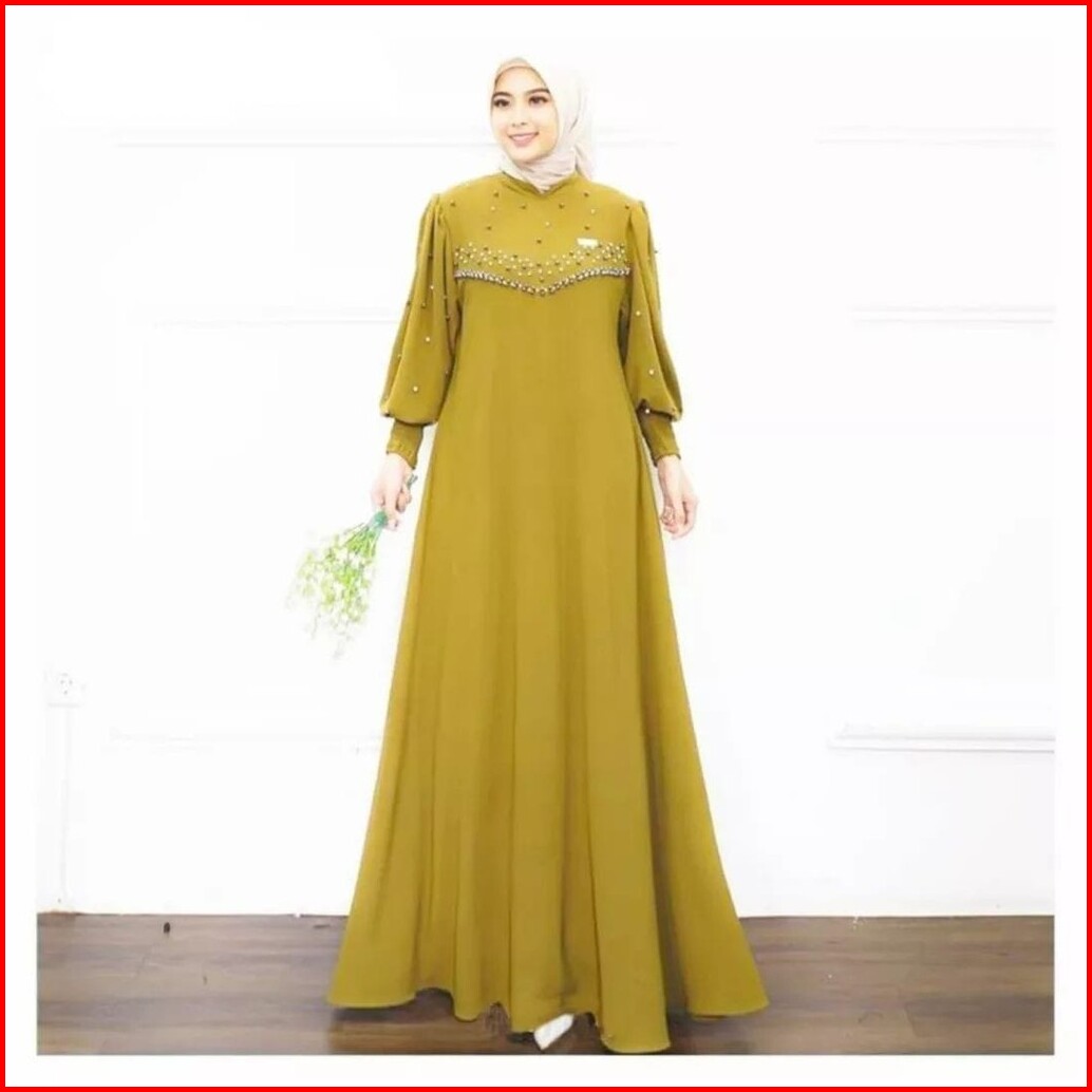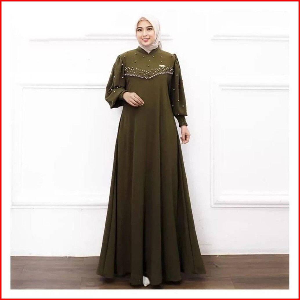 Vallina Outfit - Vioni Dress Maxy Wanita Muslim Modern Kekinian Matt Cringkle Apk Mutiara Premium