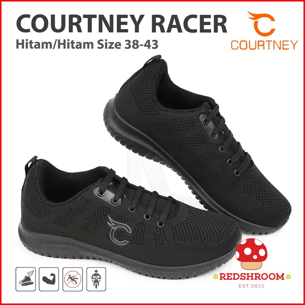 Sepatu Sneakers Courtney By Ardiles Racer Hitam-hitam Fashion Casual Lokal Ringan Nyaman Anti Slip