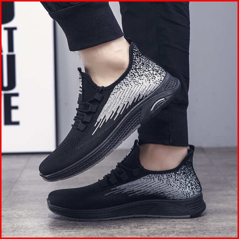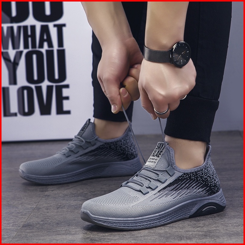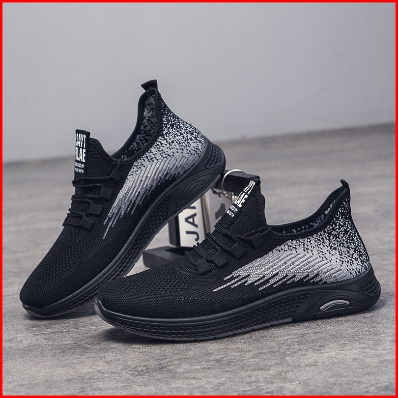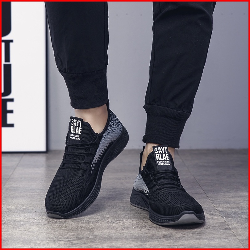 Highland Sepatu Pria Hitam Sepatu Kasual Running Shoes Tali Fashion Mr143