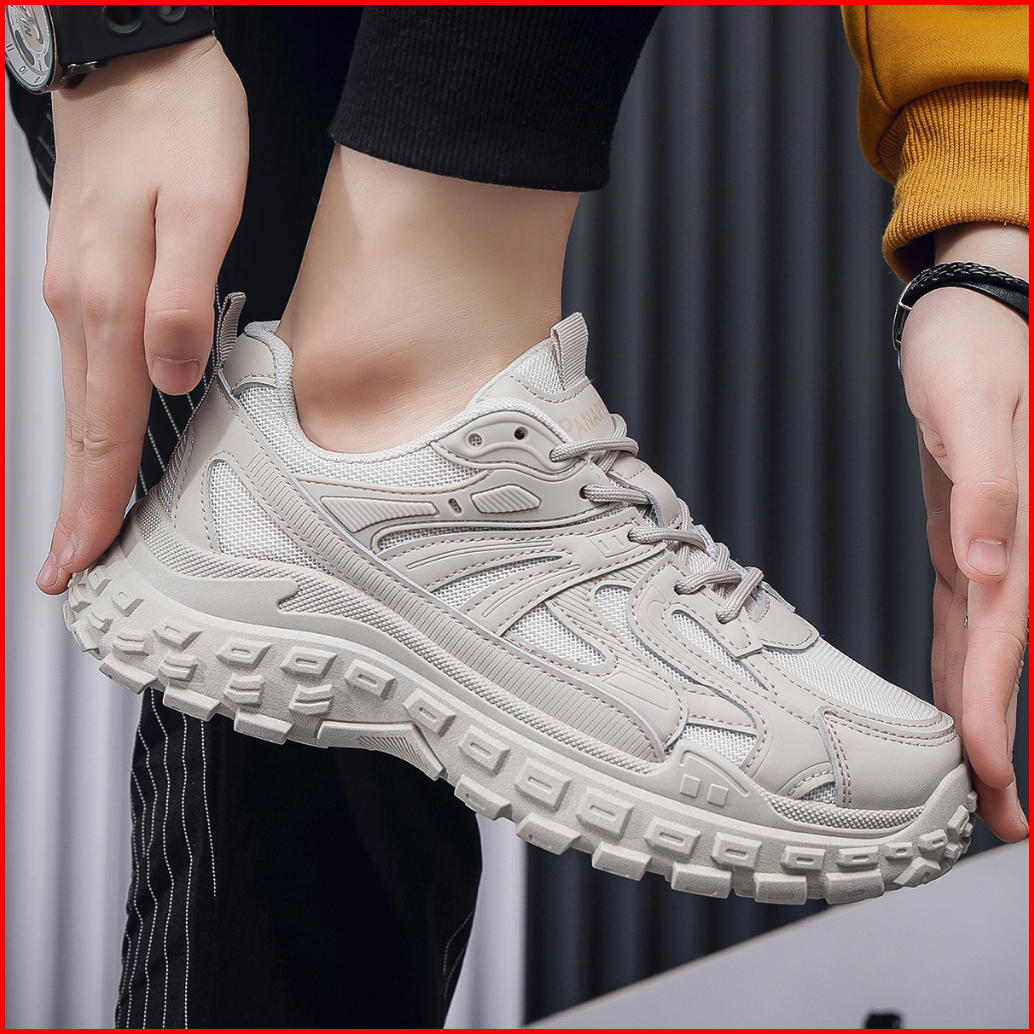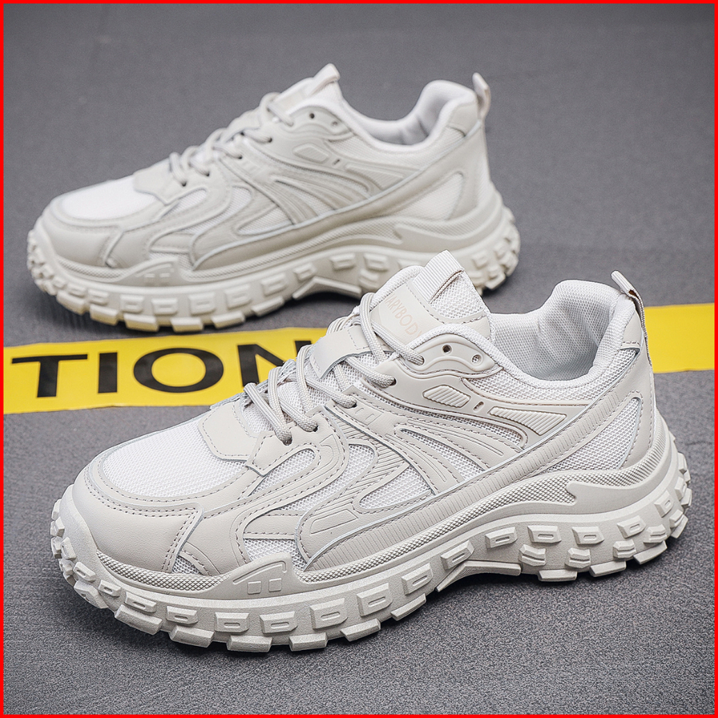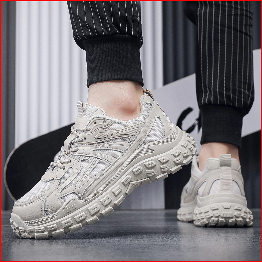 Sneakers Casual Cowok Trendy Model Terbaru High Quality Sepatu Beige Pria Fashion Kekinian Qn239