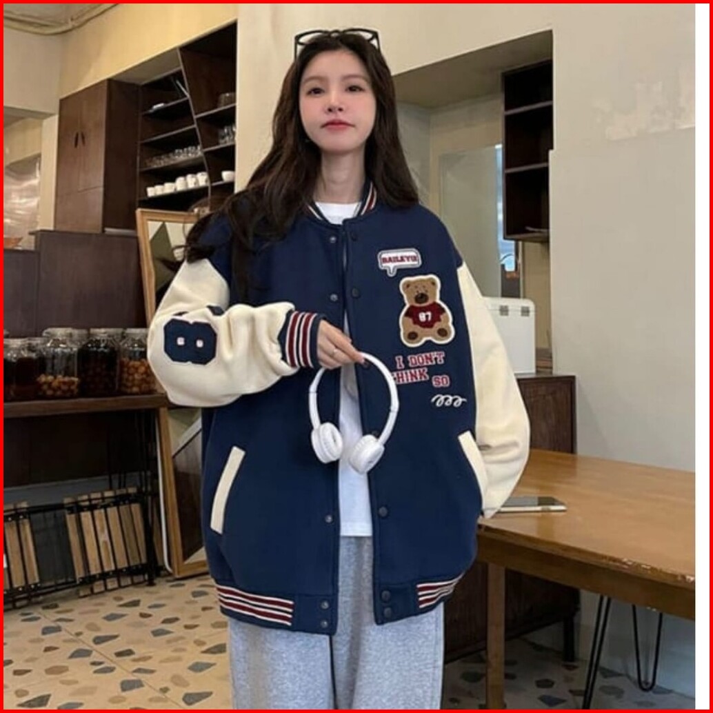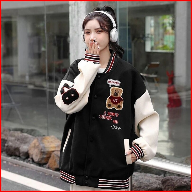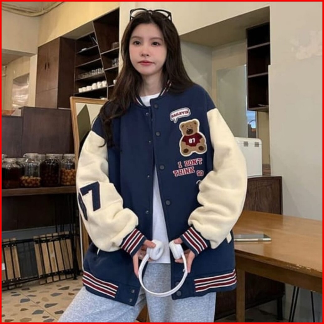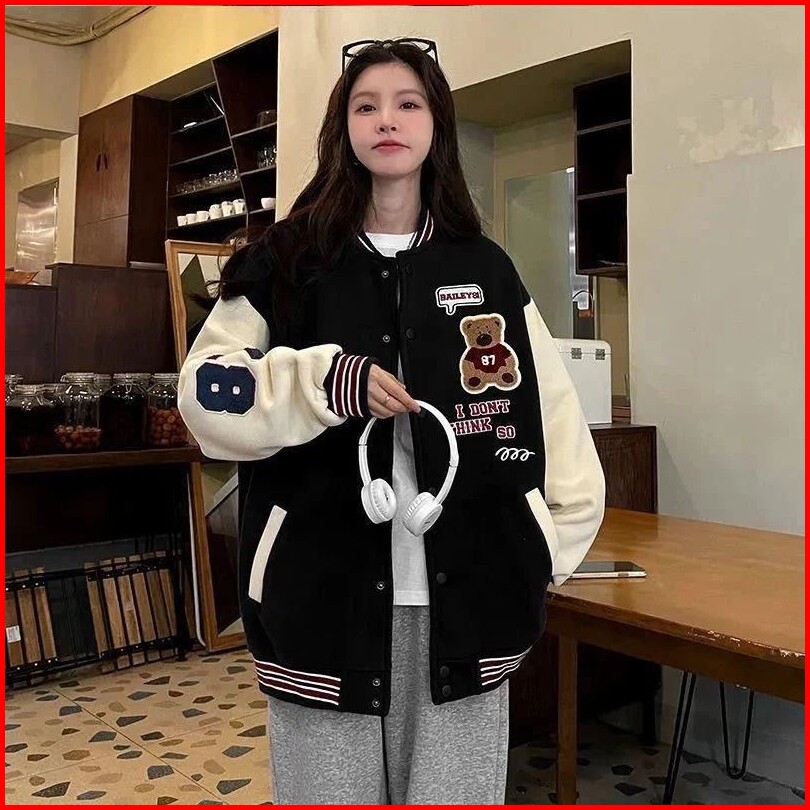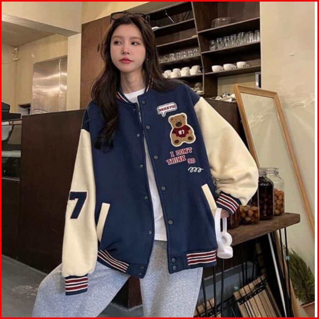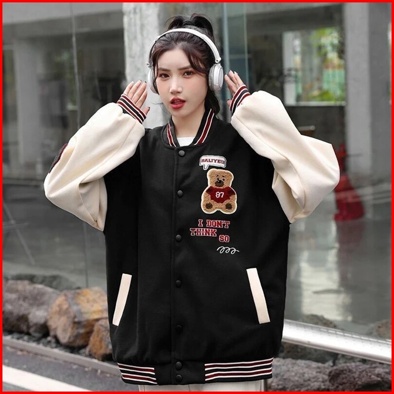 Termurah Di Vallina - I Dont Think So Bear Jaket Baseball Varsity Outerwear Wanita Remaja Matt Fleece Sablon Tebal Korea