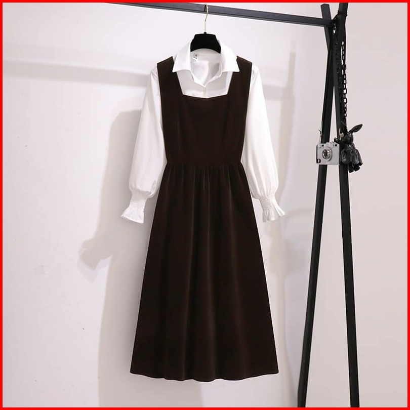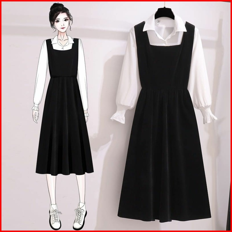 Vallina Outfit - Harumi Midi 2in1 Remaja Wanita Korean Style Tunik Muslim Polos Premium