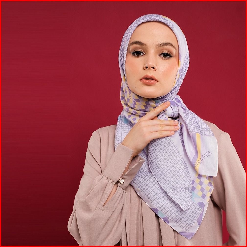 Shafira Maeve Printed Scarf Ultra Voal Hijab Segi Empat Kerudung Motif With Box
