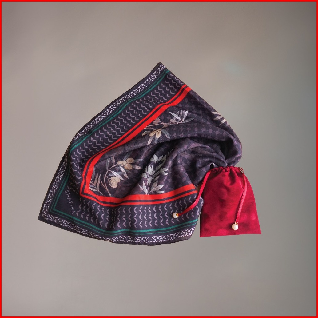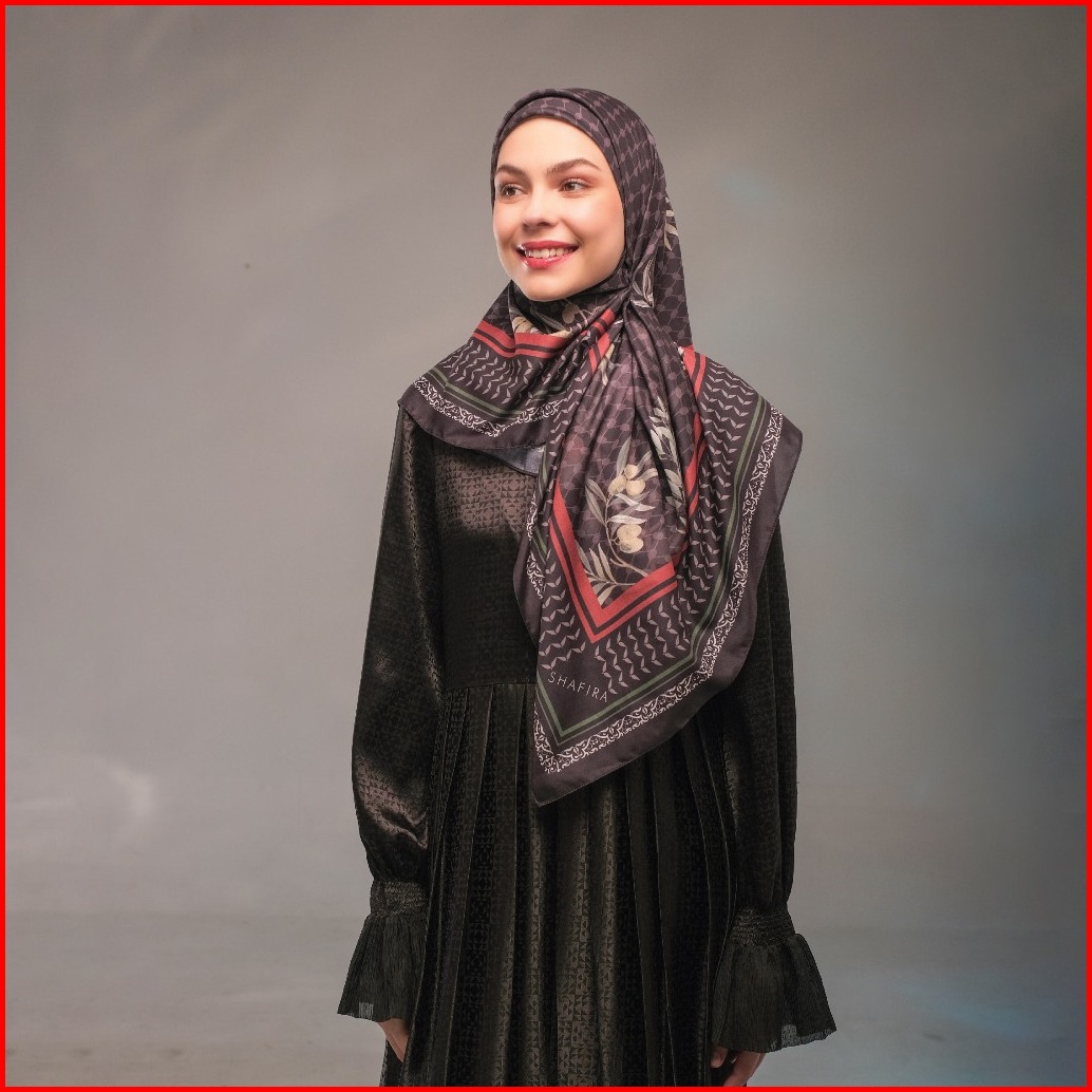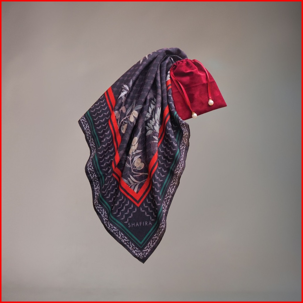 Shafira Houria Exclusive Collections Printed Scarf Black Hijab Segi Empat Motif With Box