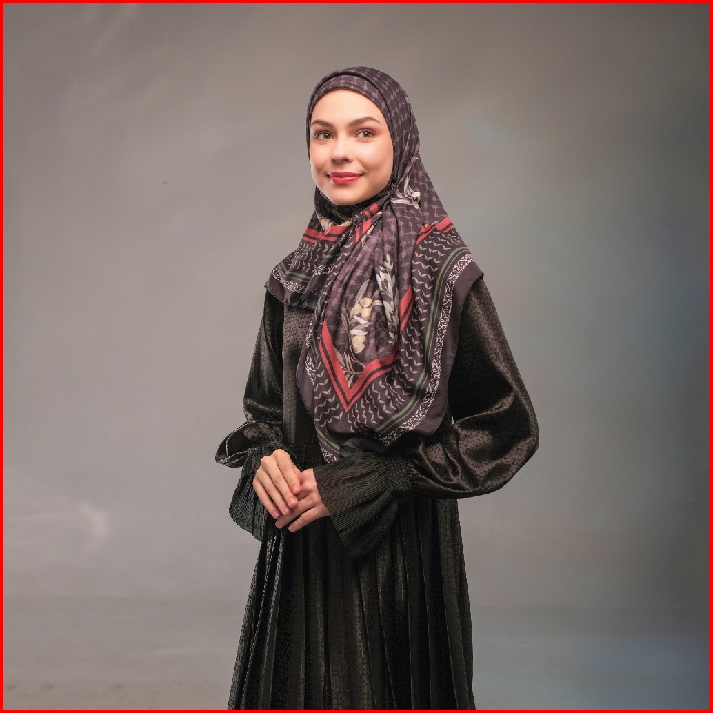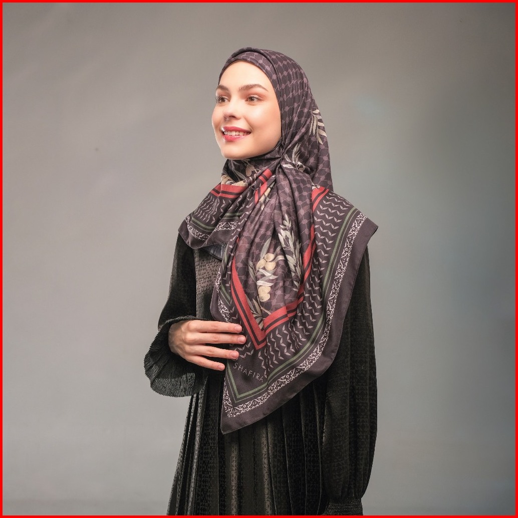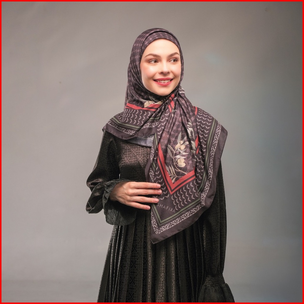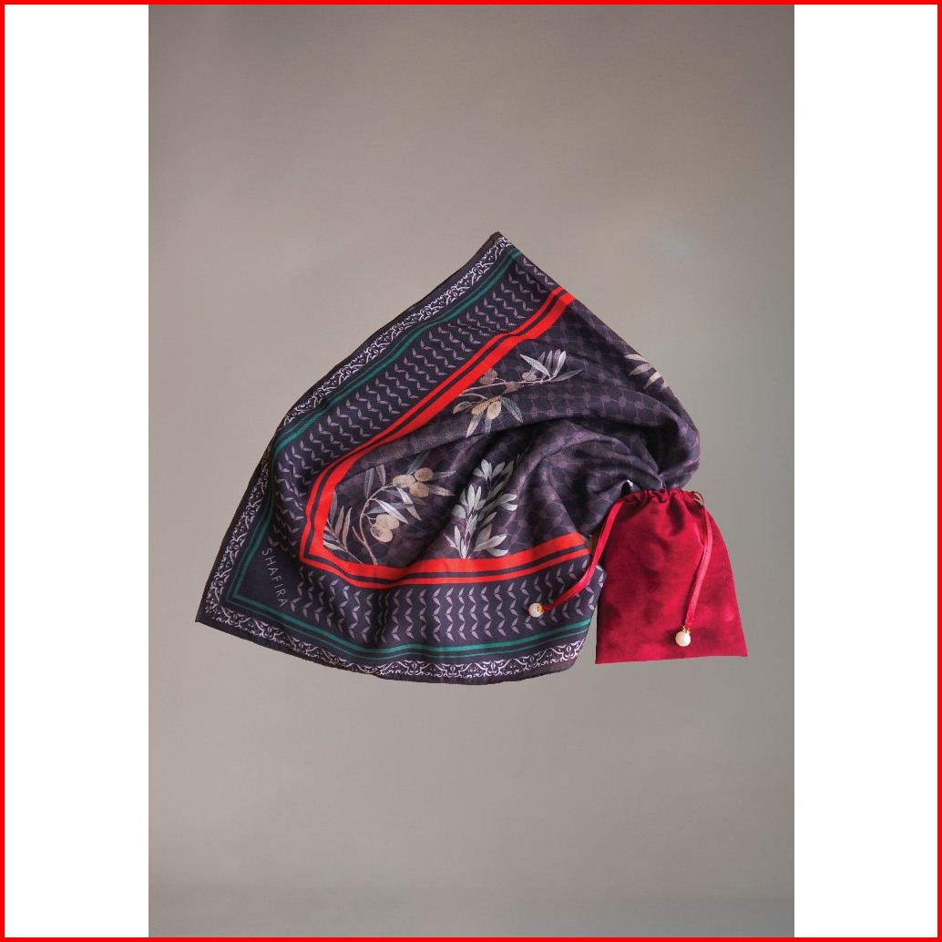 Shafira Houria Exclusive Collections Printed Scarf Black Hijab Segi Empat Motif With Box