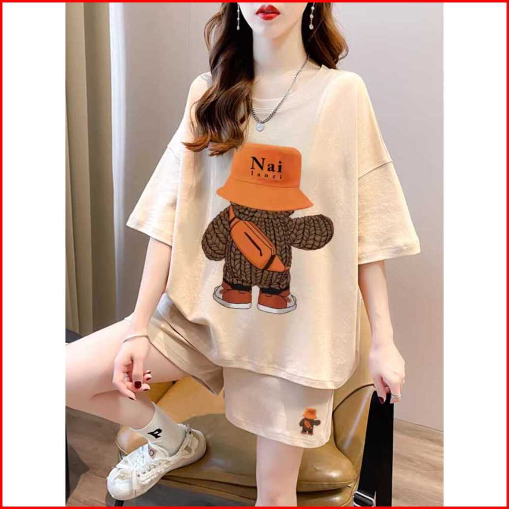 Oneset Bear Street Nai Lanzi Setelan Kaos Dan Celana Pendek
