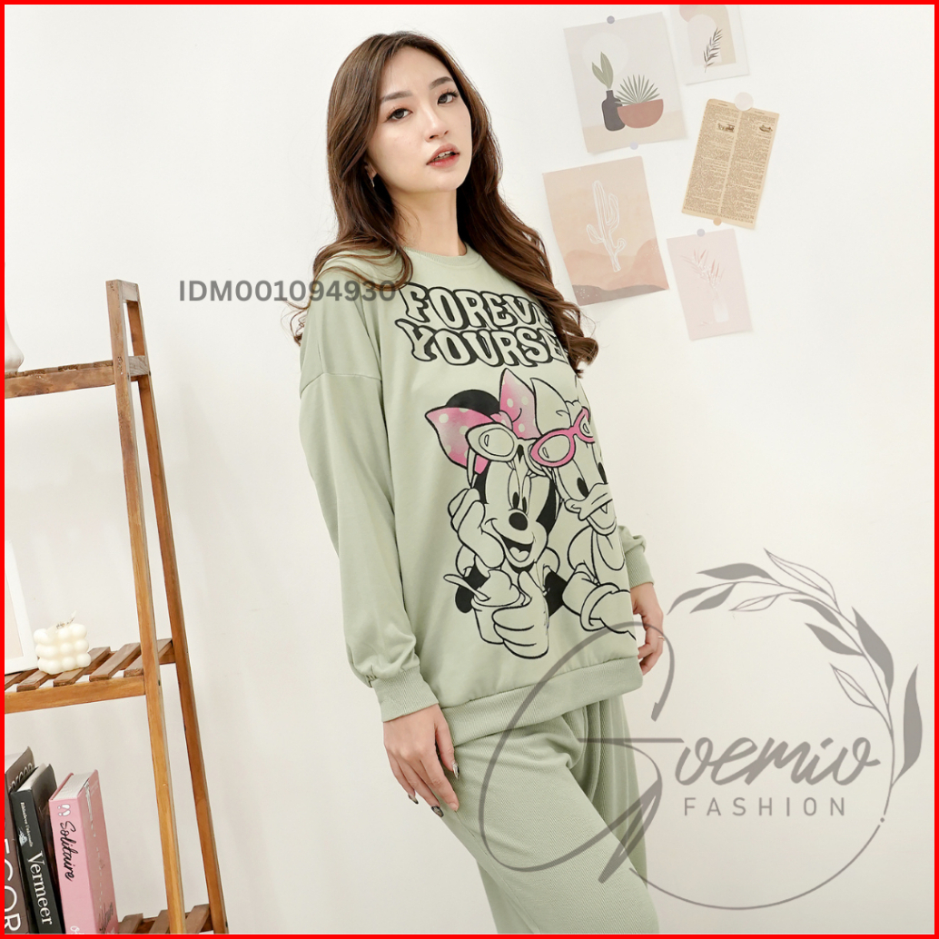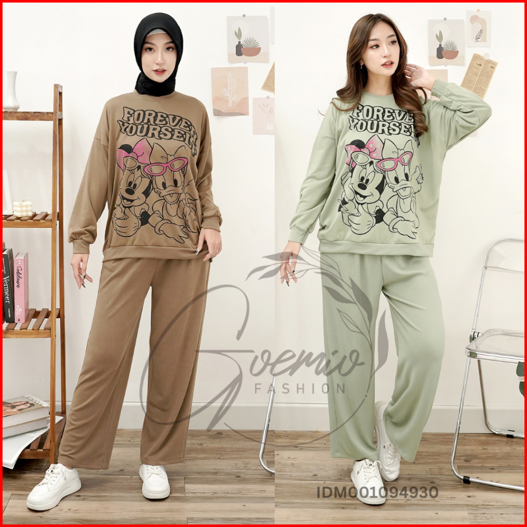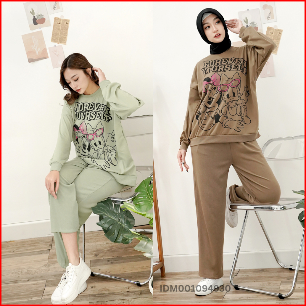 Ilook Ld 120 One Set Forever Setelan Katun Knit Combi Atasan Motif Dan Celana Panjang Wanita Motif Lengan Panjang