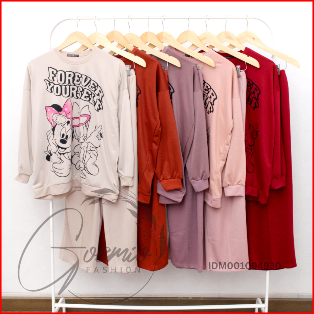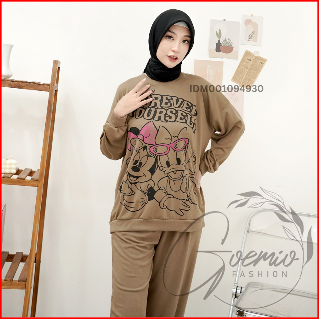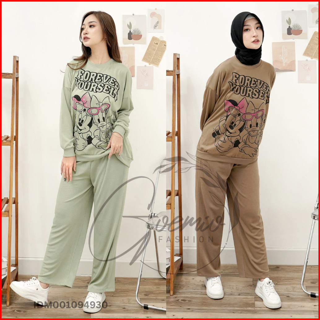 Ilook Ld 120 One Set Forever Setelan Katun Knit Combi Atasan Motif Dan Celana Panjang Wanita Motif Lengan Panjang