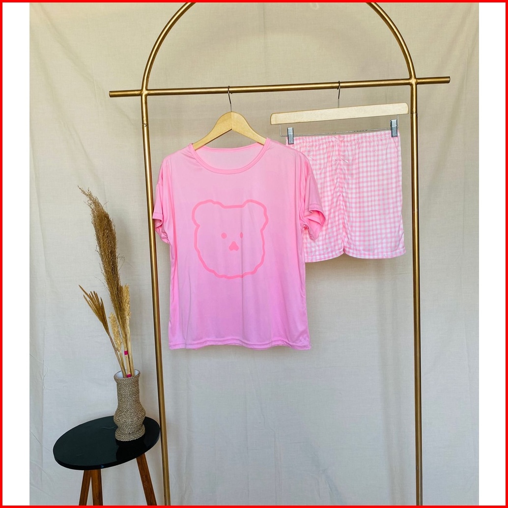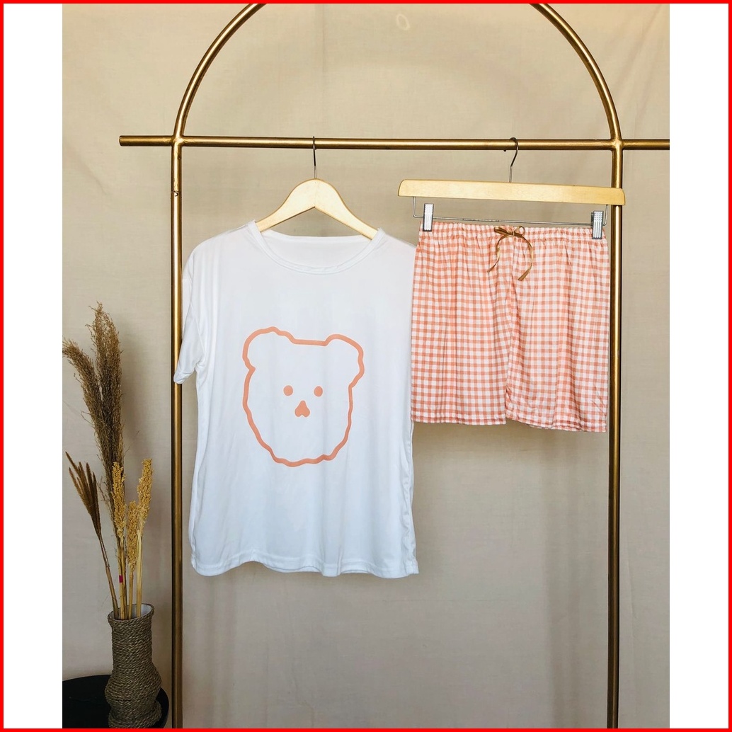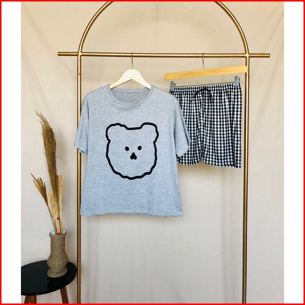 Lovera Piyama Wanita Dewasa Model Kepala Bear Lengan Pendek Celana Pendek High Quality Sleepwear