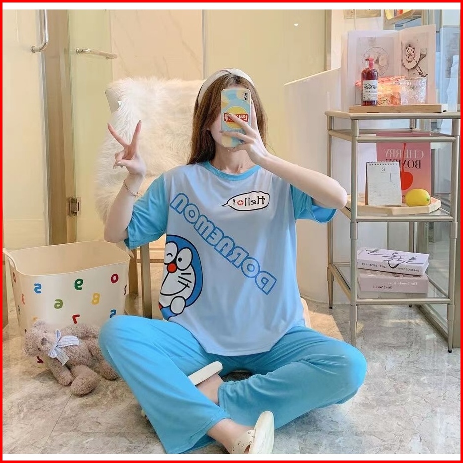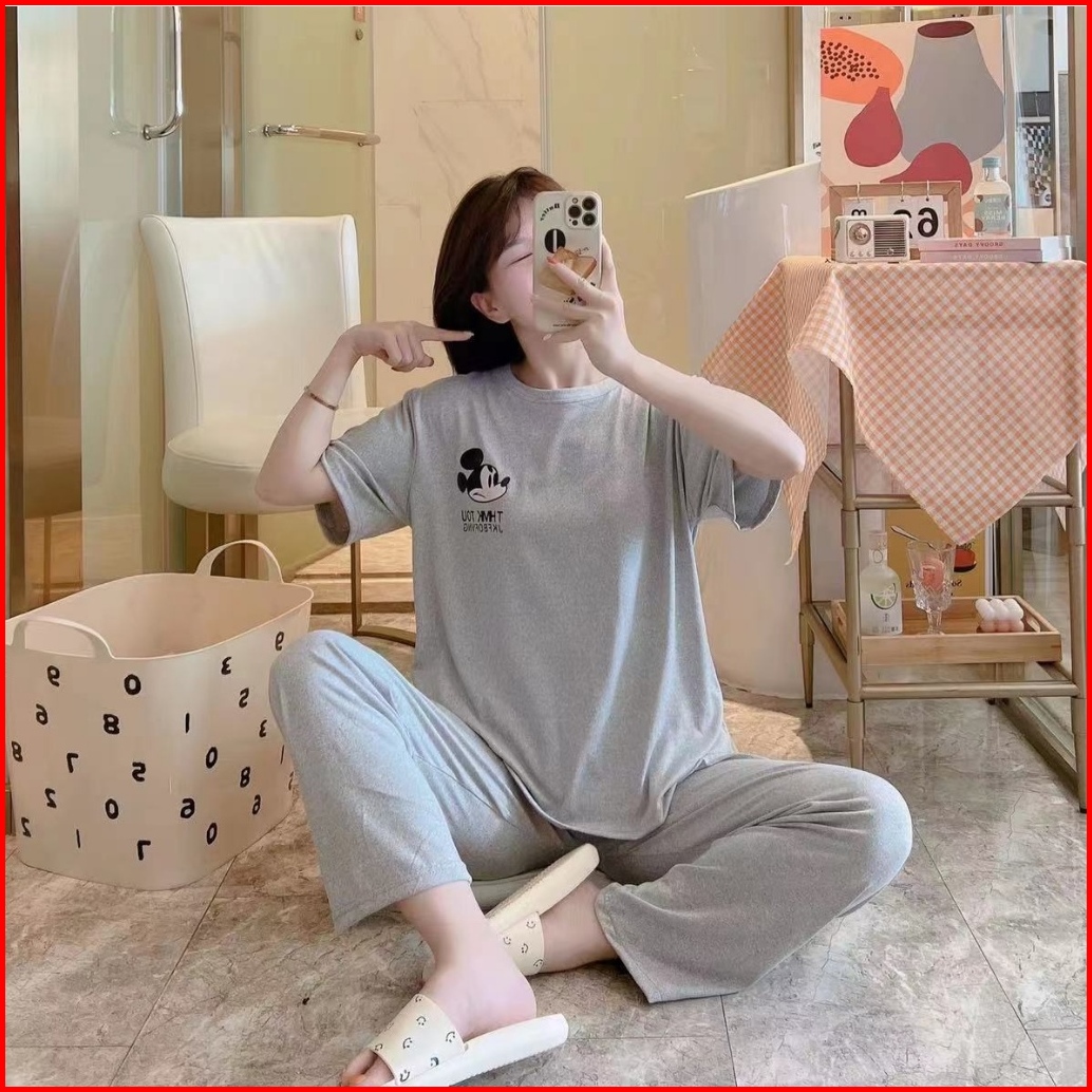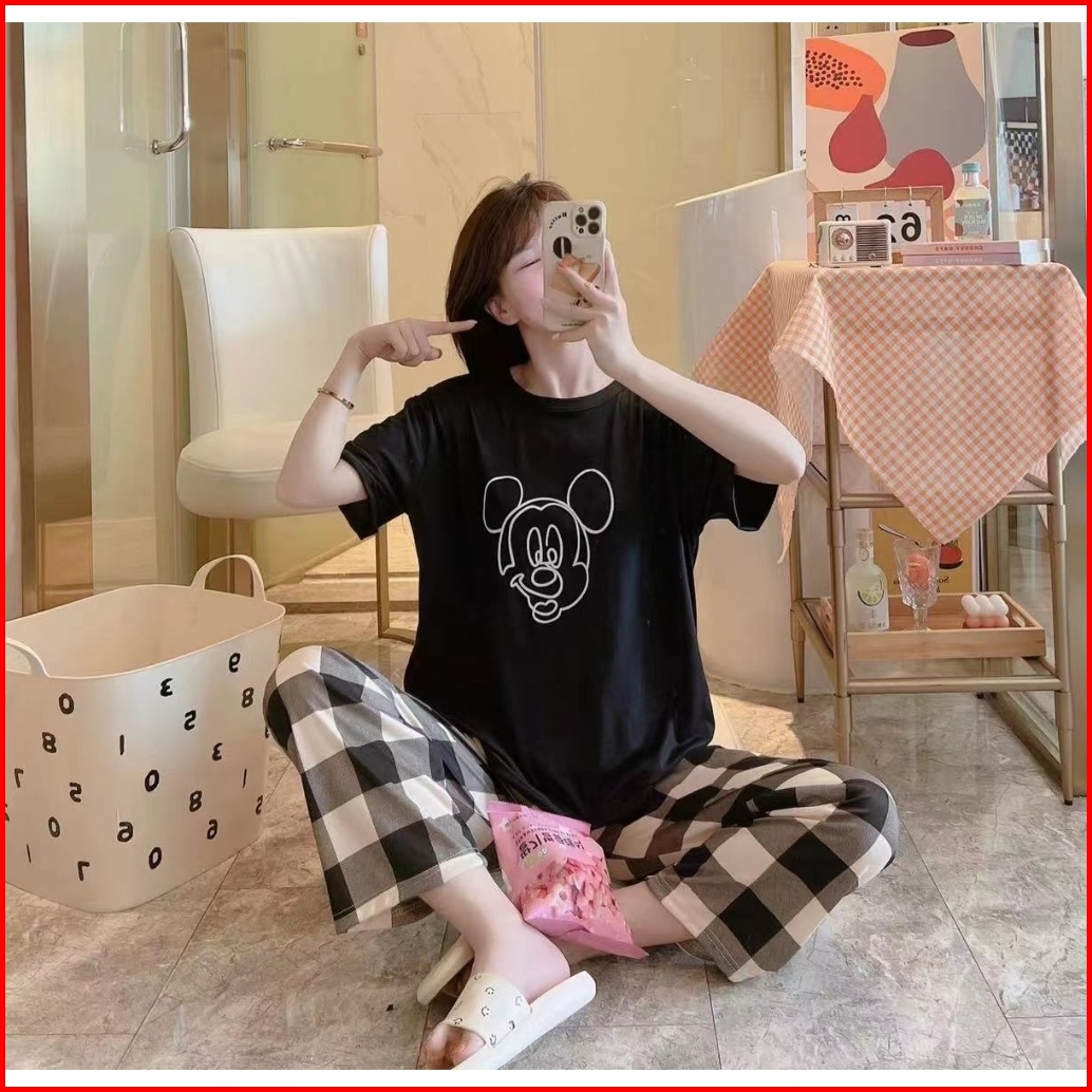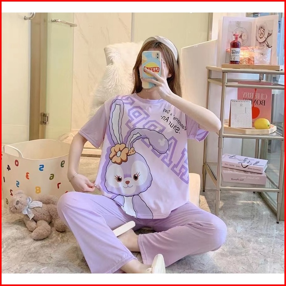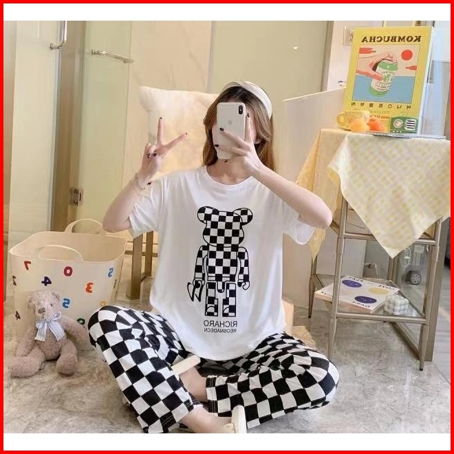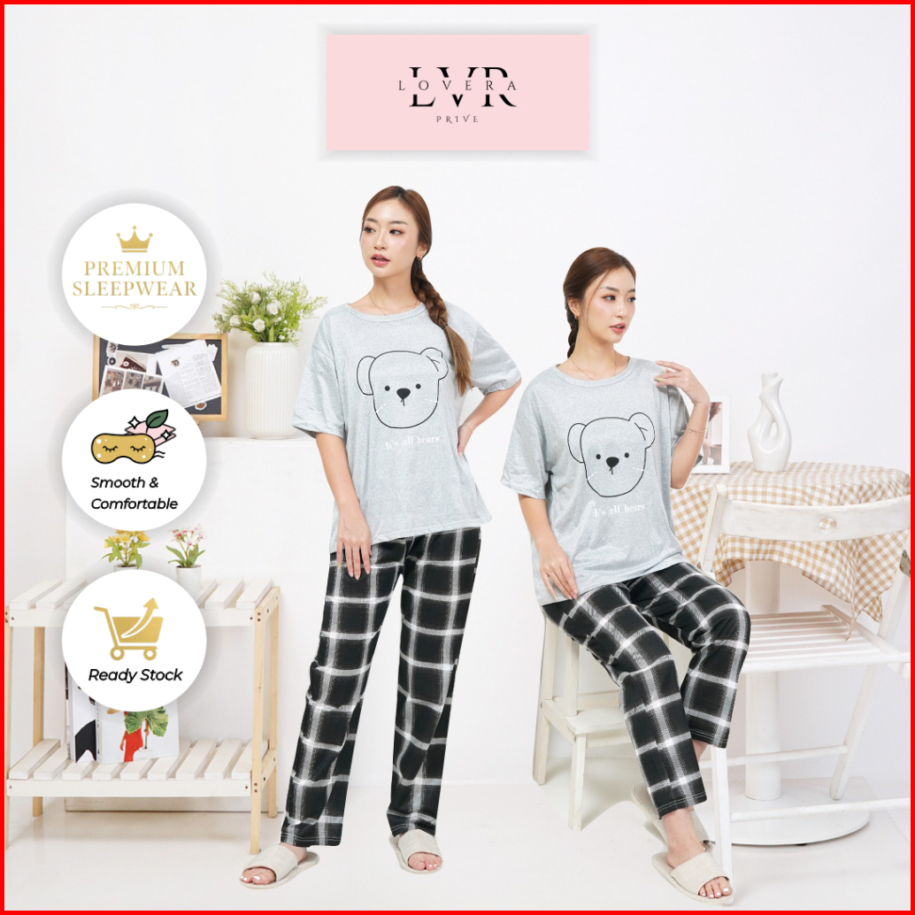 Lovera Piyama Dewasa Serba Nyaman Model Set Celana Panjang Lengan Pendek Desain Modis Dengan Motif Menawan
