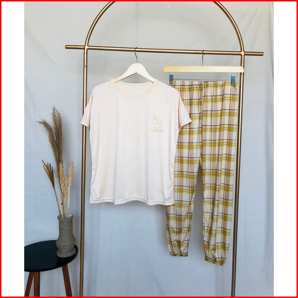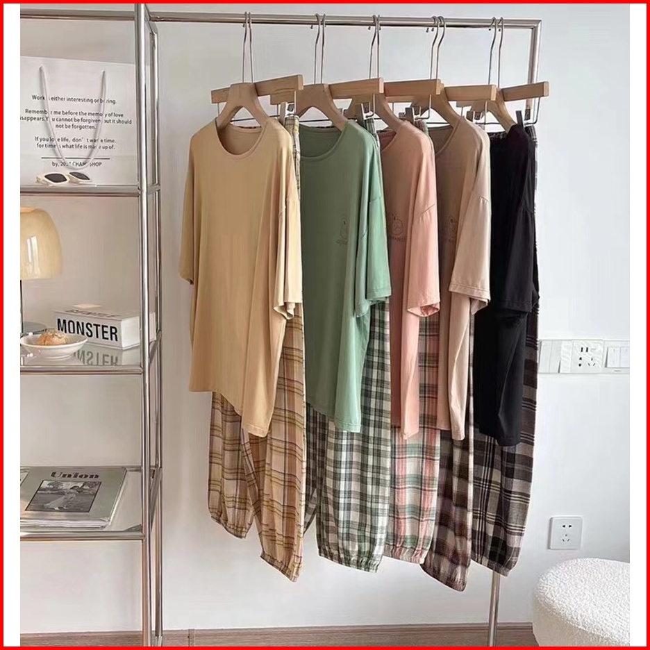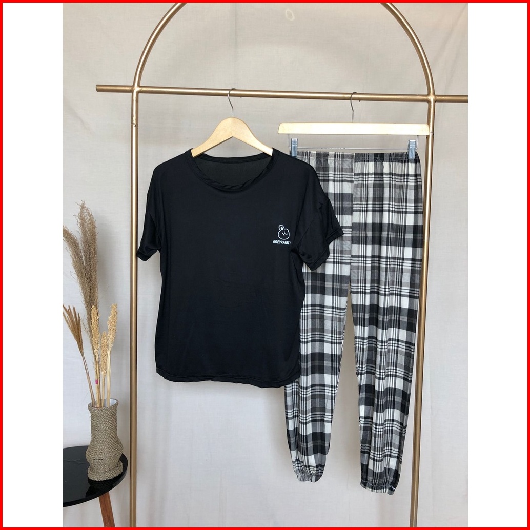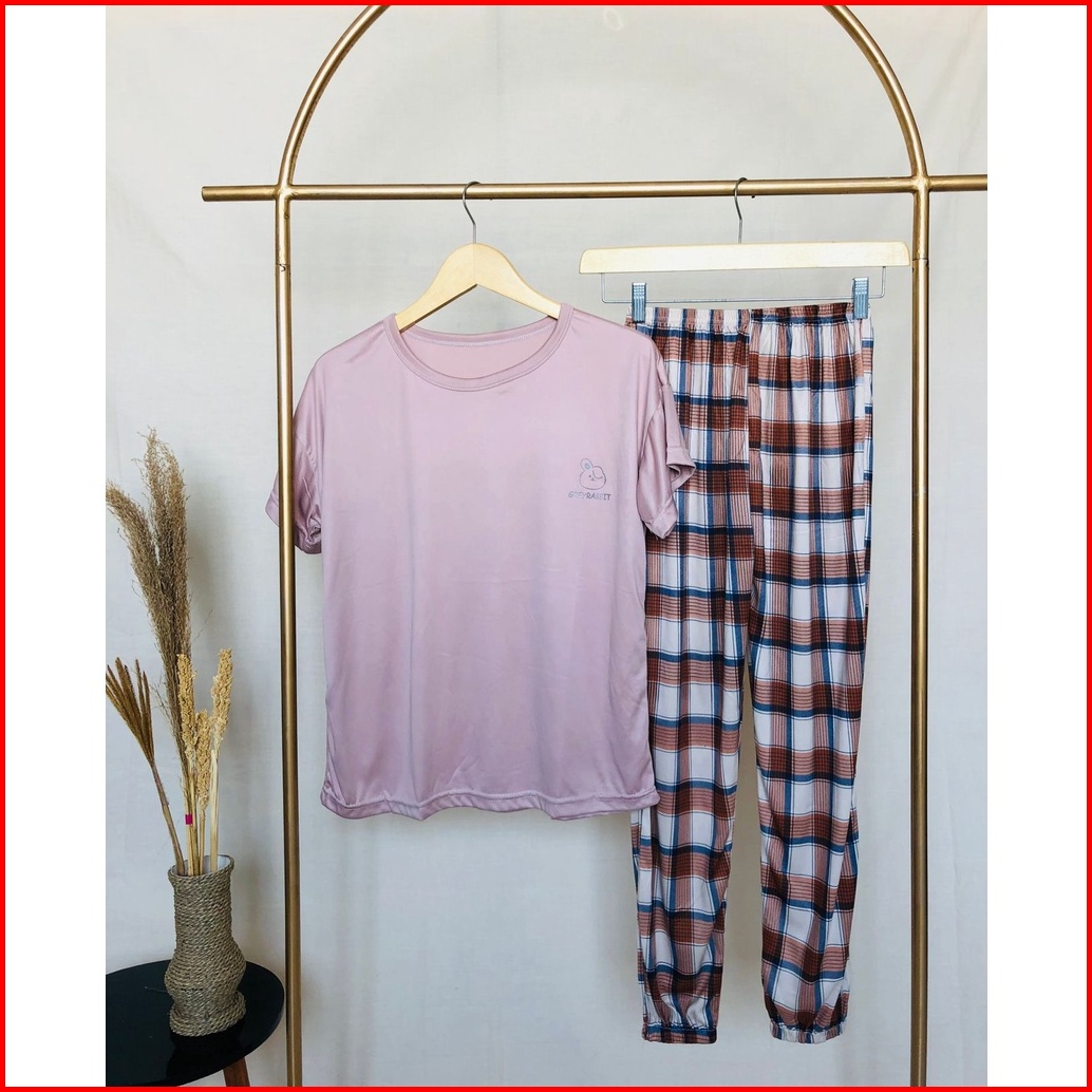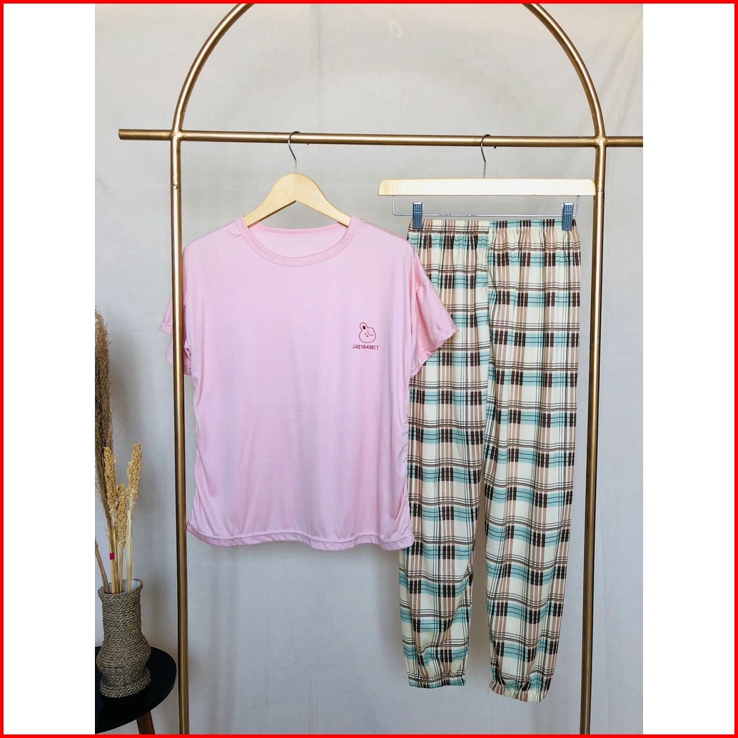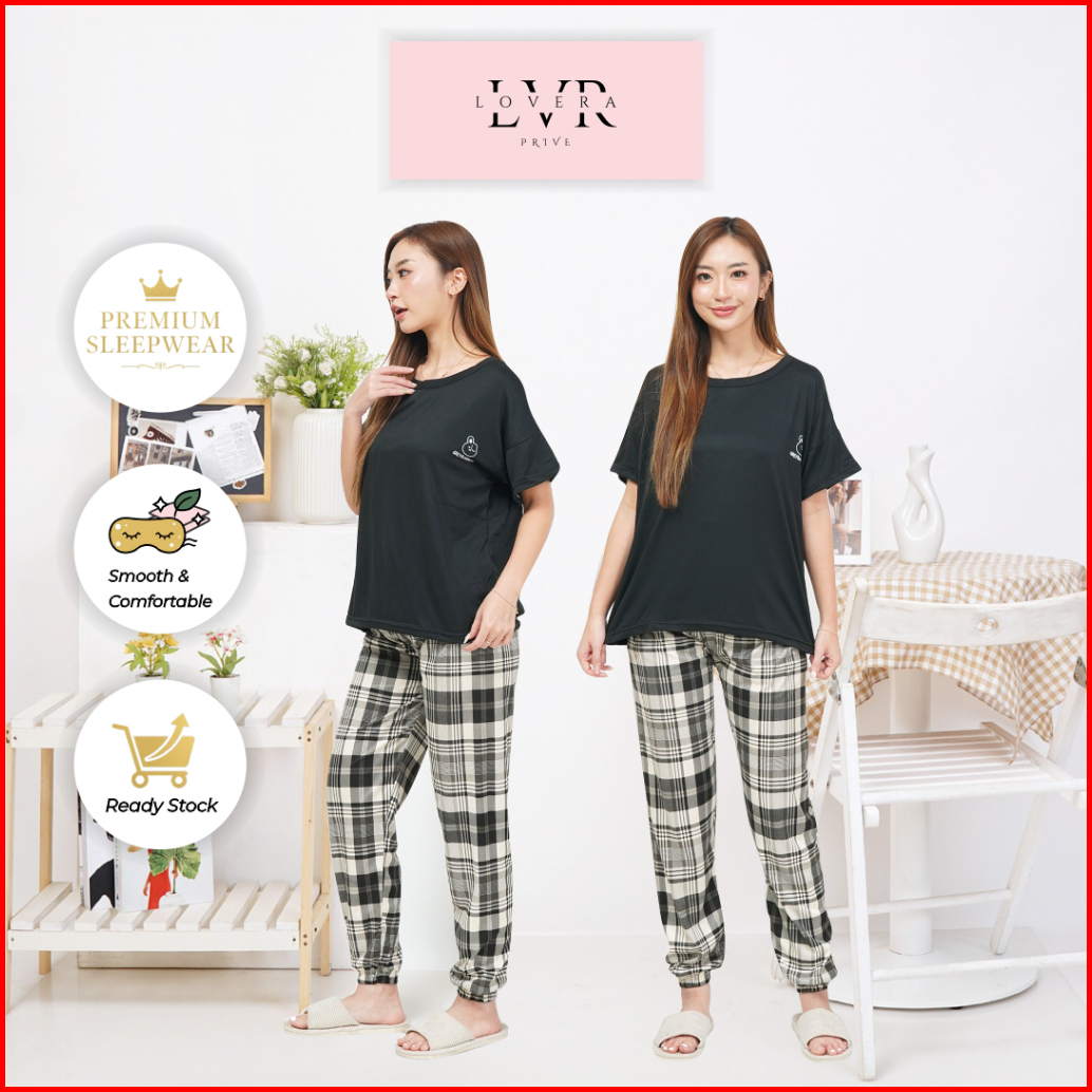 Lovera Piyama Wanita Dewasa Tshirt Bermotif Lengan Pendek Celana Panjang High Quality Sleepwear