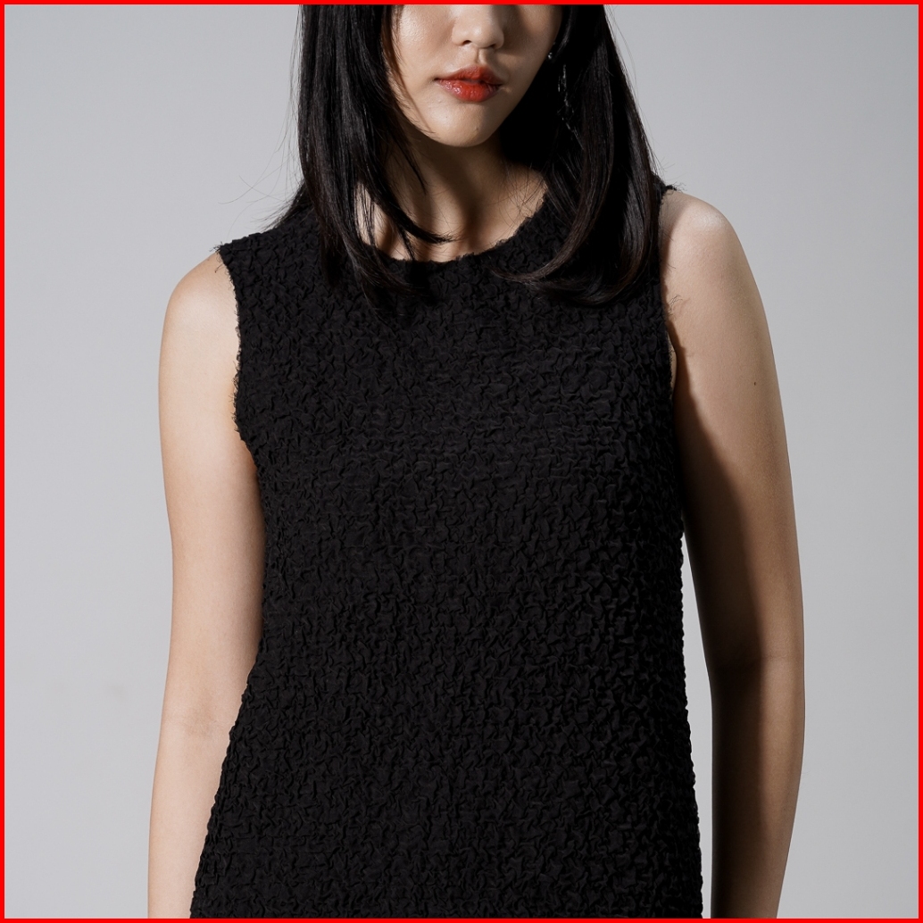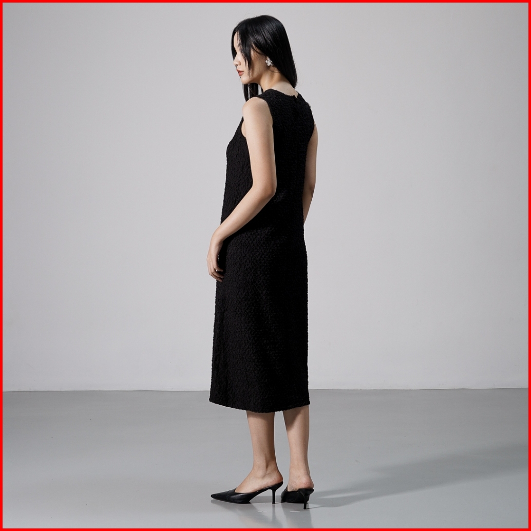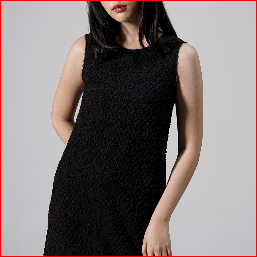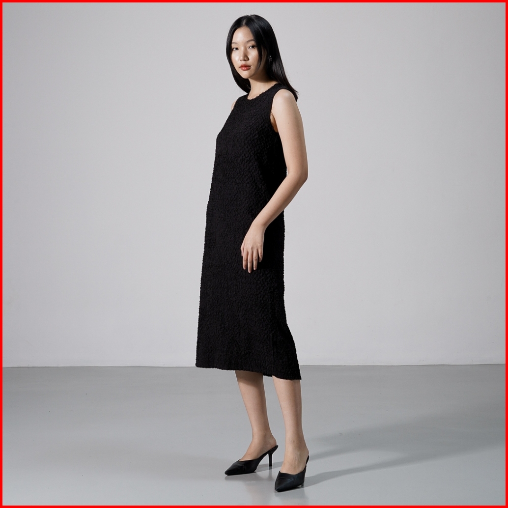 This Is April Gaun Wanita Midi Textured Tanpa Lengan Elegan Carolina Dress Ivory Dan Black Restock
