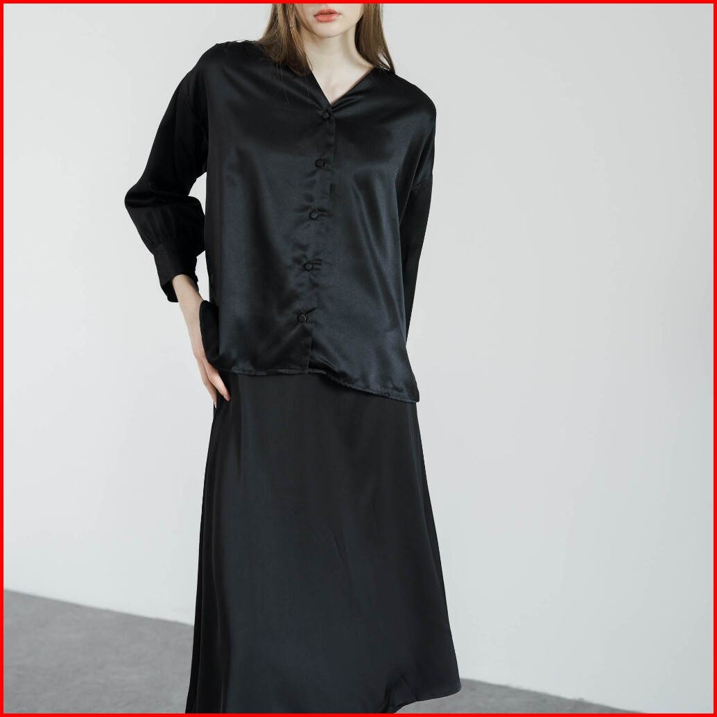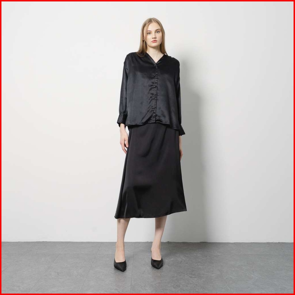 This Is April - Atasan Blouse Wanita Malora Satin Top Black - Hijab Friendly 611570