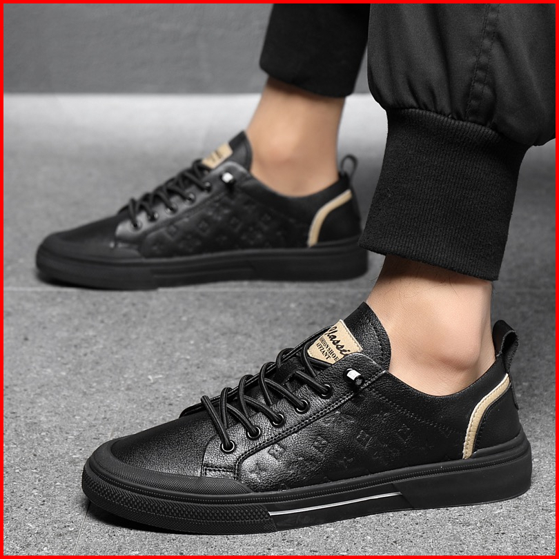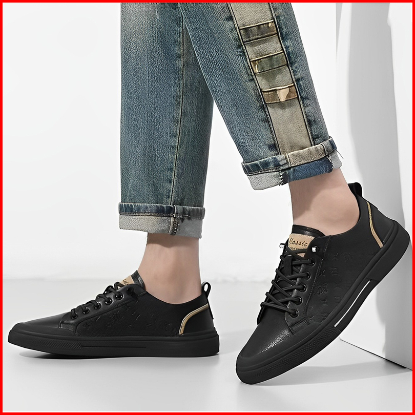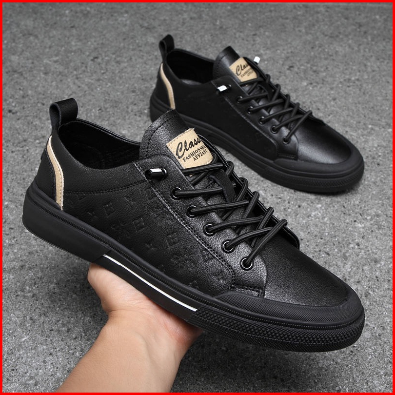 Highland Sepatu Pria Original Slip On Hitam Sneakers Cowok Black Fashionable Trendy Sepatu Jalan Pria Casual Sepatu Olah