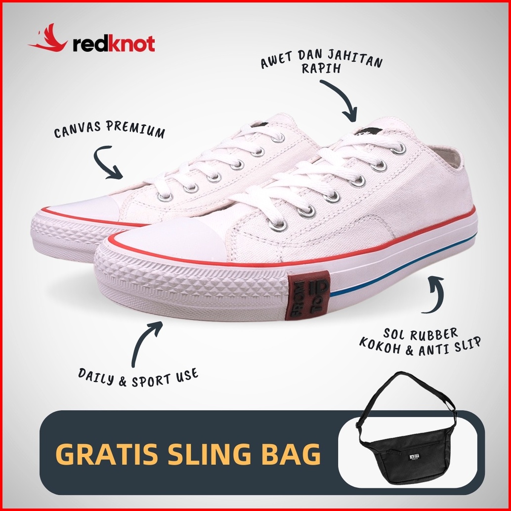 Redknot Leandro Low Putih - Sepatu Sneakers Pria Murah Terbaik Bonus Waistbag Senilai 400ribu