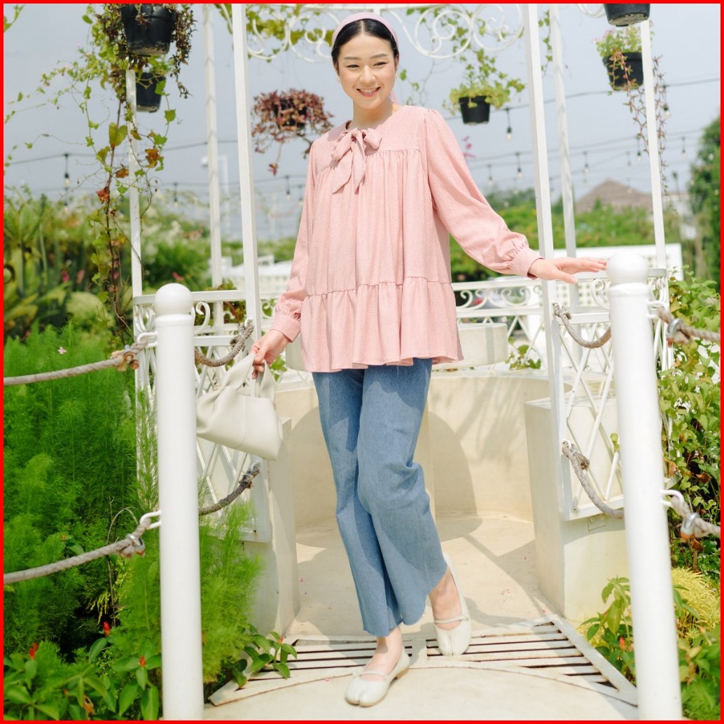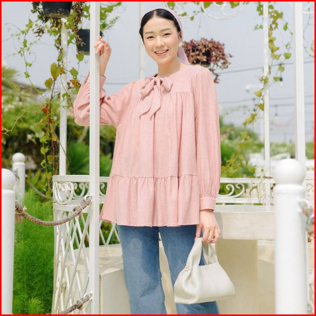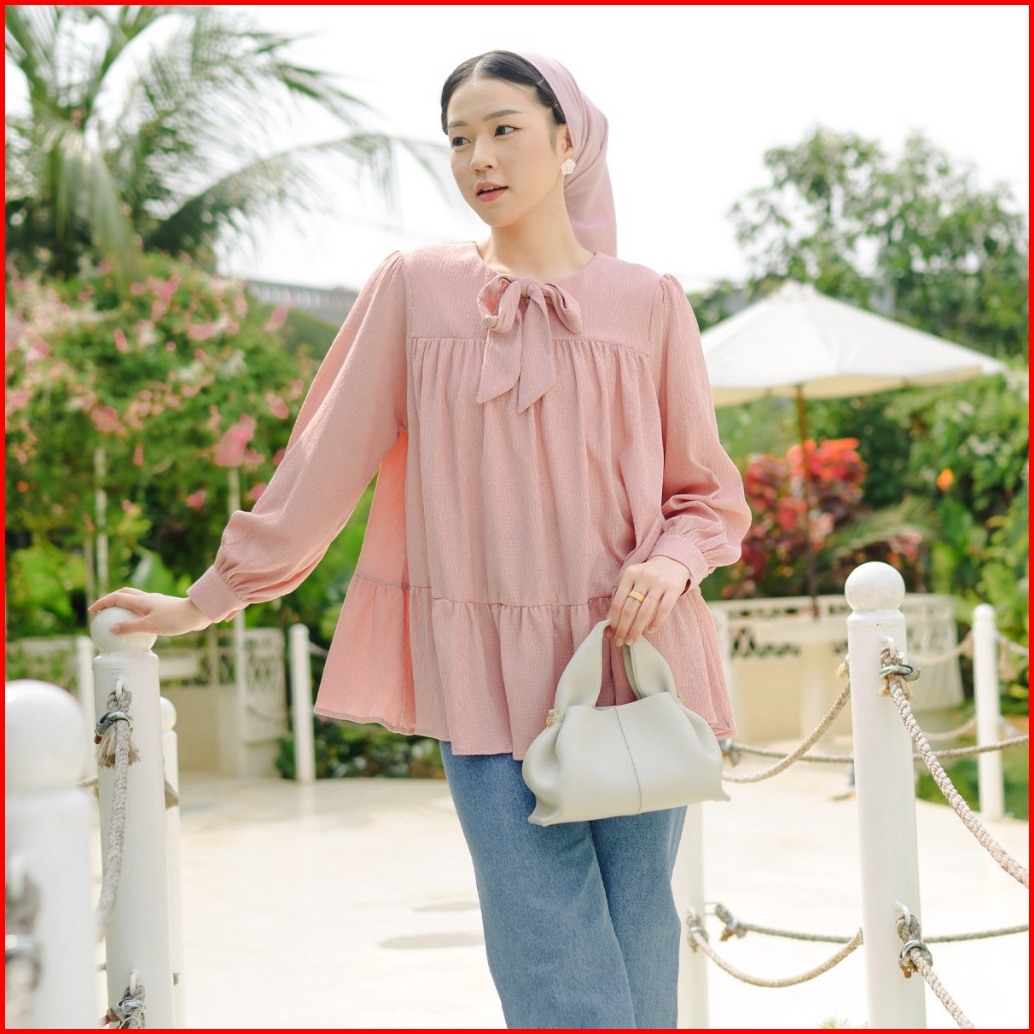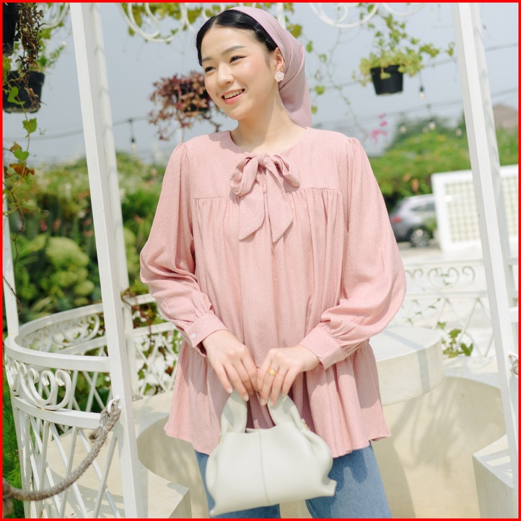 Hijabchic Ziana Pink Top - Blouse Muslim Crinkle Cantik Pita Girly Anti Kusut Terbaru