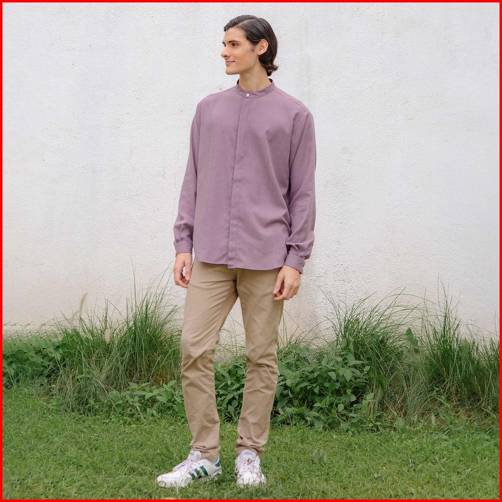 Hijabchic Altair Mauve Koko - Baju Koko Pria Lengan Panjang Polos Nyaman Hidden Button