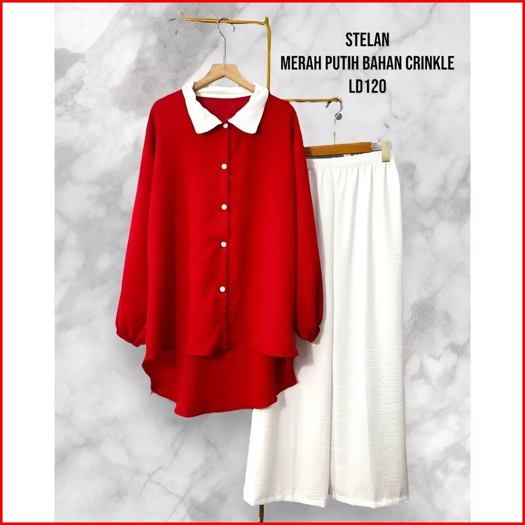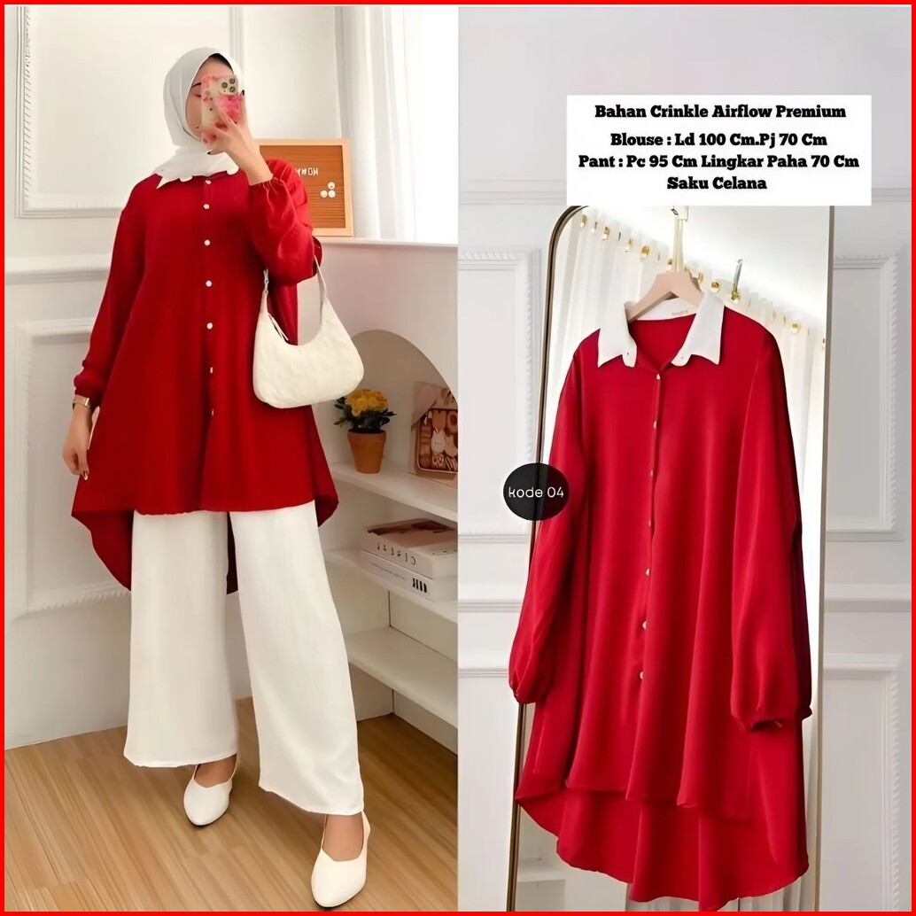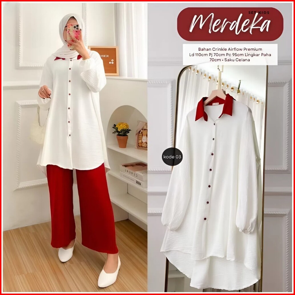 Vallina Outfit - Azura One Set 2in1 Wanita Muslim Merah Putih Matt Cringkle Airflow Ootd Setelan 17 Agustus