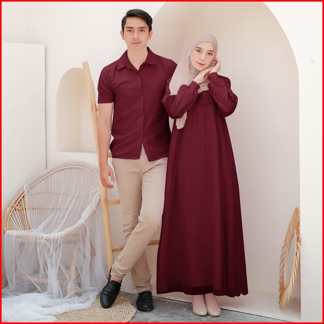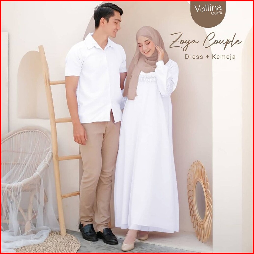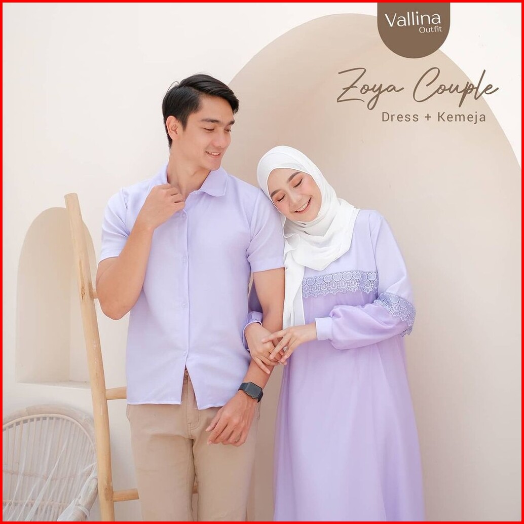 Vallina Outfit - Zoya Couple Baju Pasangan Cp Dress Gamis Set Kemeja Muslim Lebaran Premium