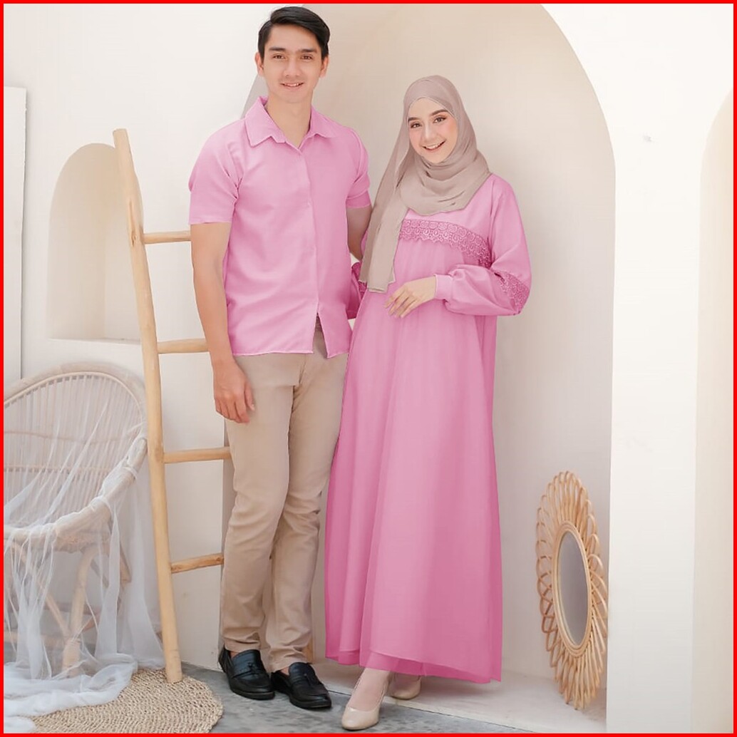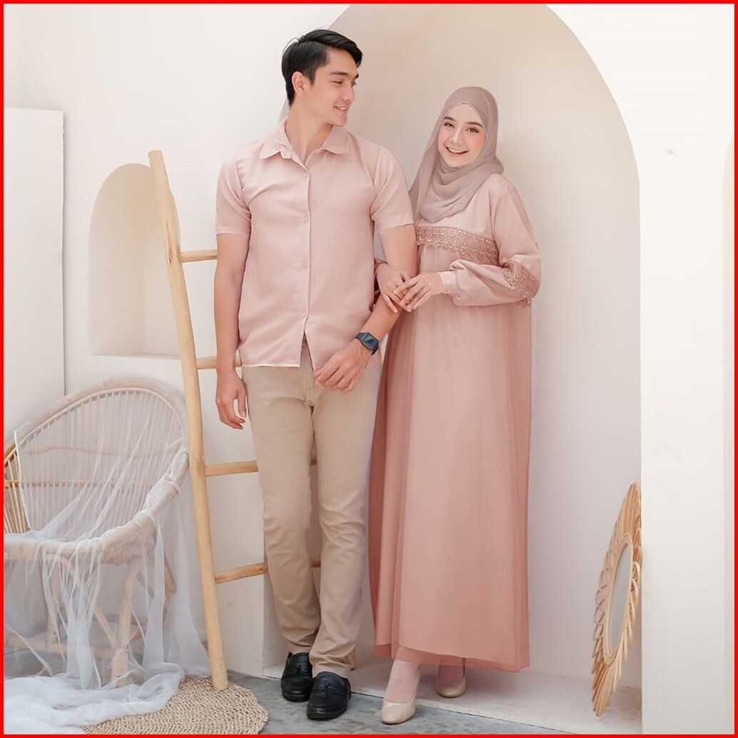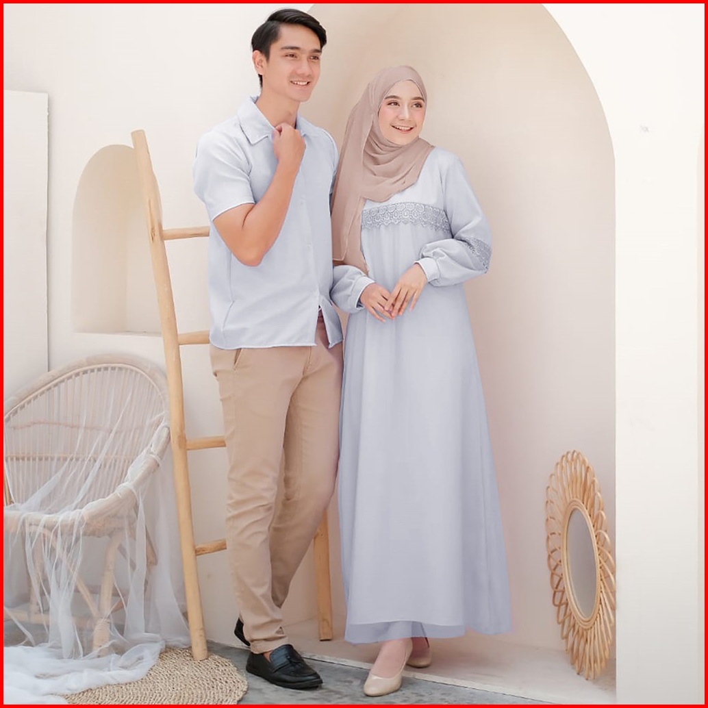 Vallina Outfit - Zoya Couple Baju Pasangan Cp Dress Gamis Set Kemeja Muslim Lebaran Premium