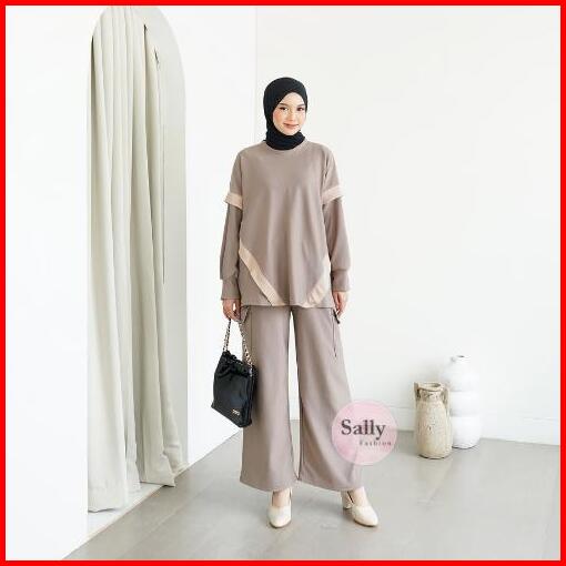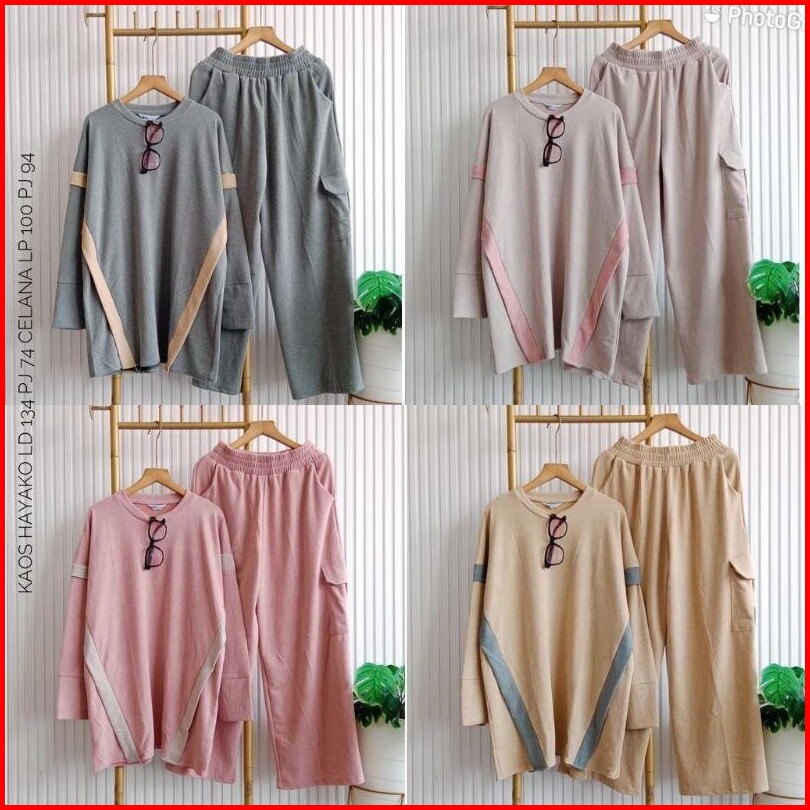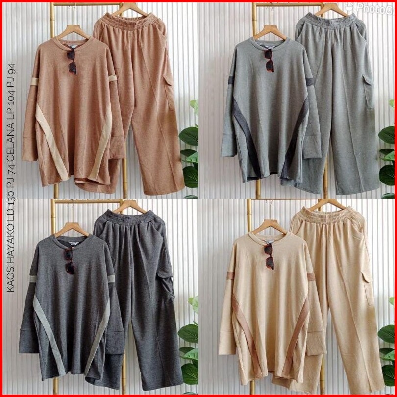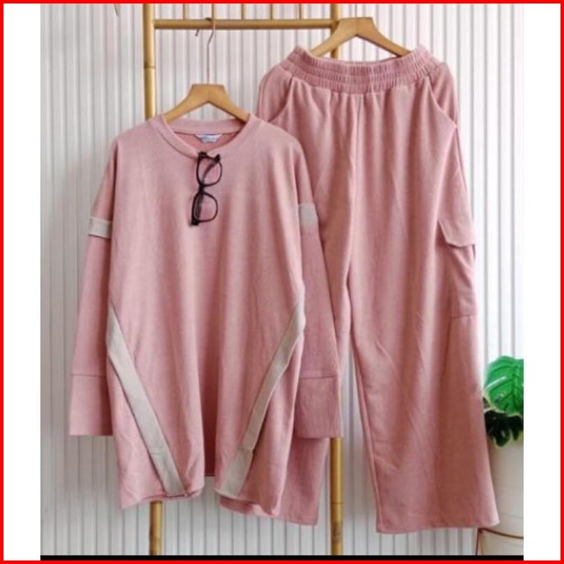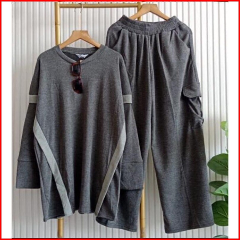 Najwa - Setelan Wanita Gaye Celana Cargo Rib Knit List Kombinasi Setelan Wanita