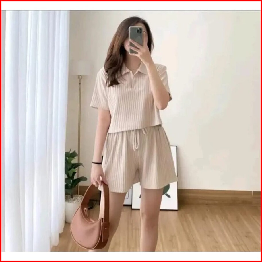 Set Pakaian Wanita - Cassia One Set Crop Pants Knit Hornet Premium - Setelan Wanita One Set Casual