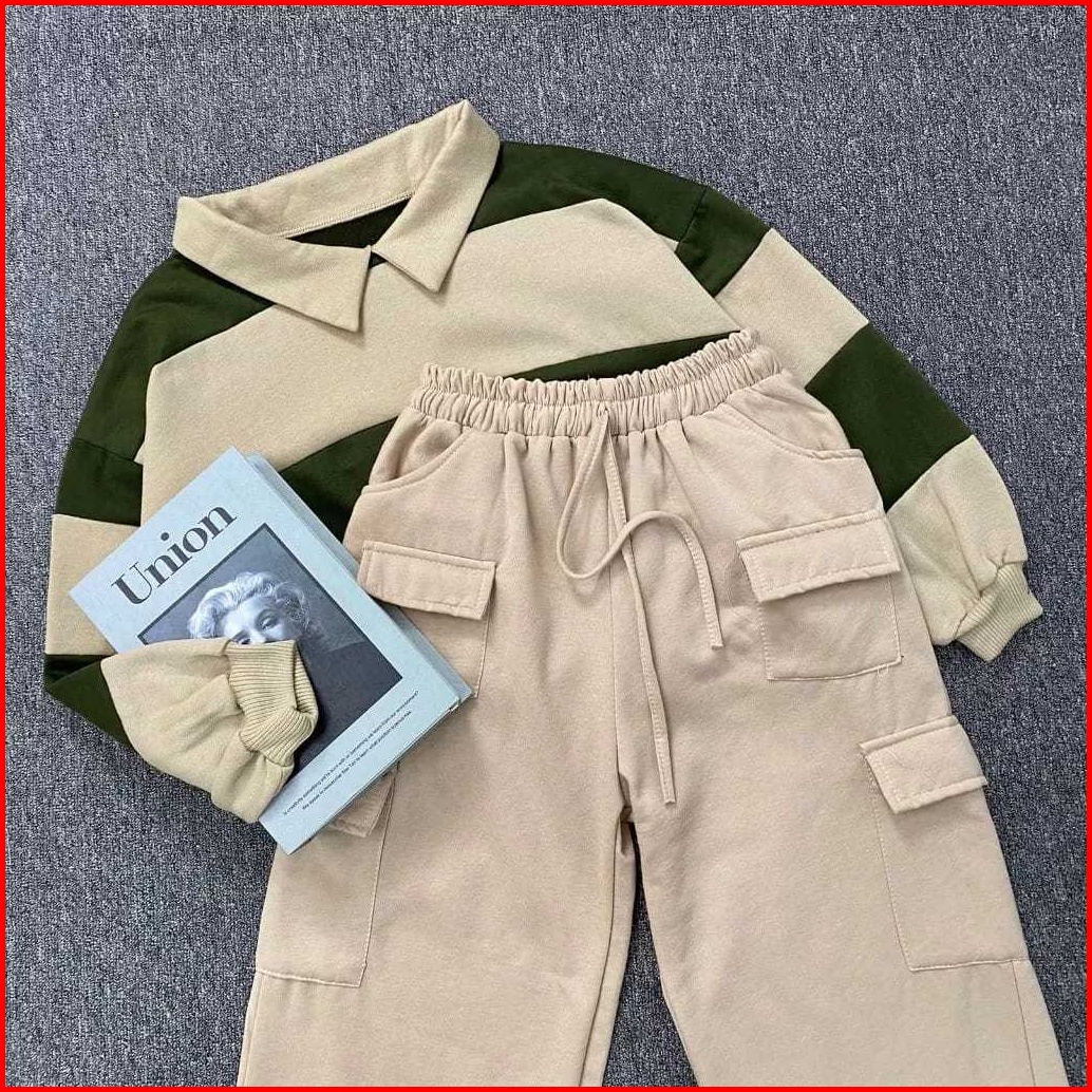 Ji Hoo Combie Crop Mix Celana Jolly Pants - Setelan Wanita Terbaru - One Set