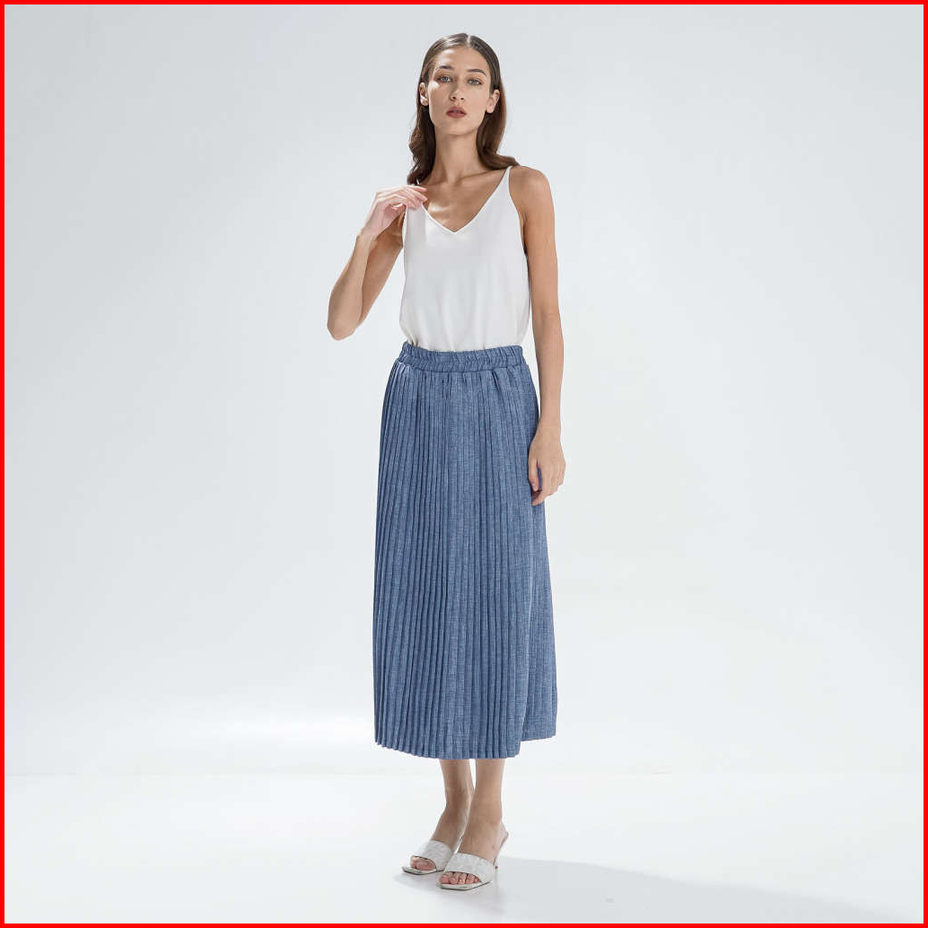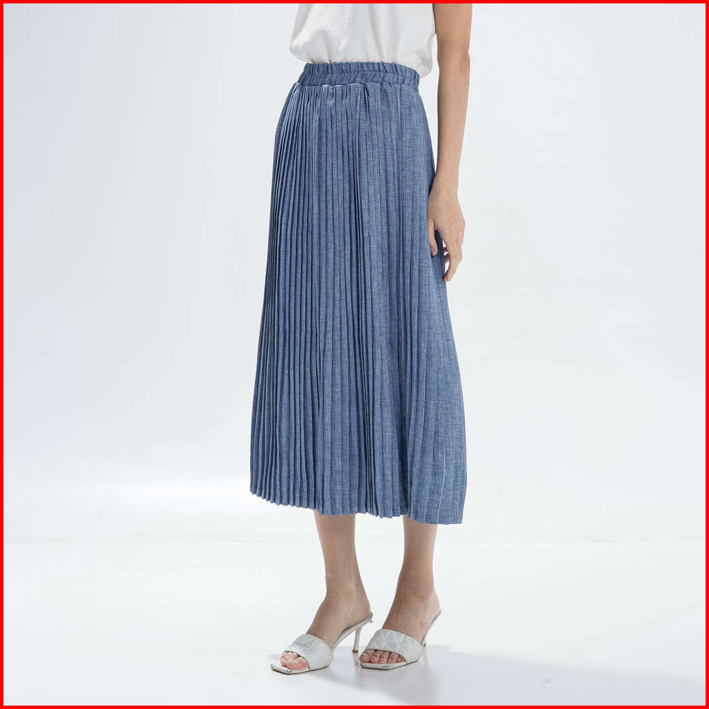 This Is April Rok Panjang Wanita Plisket Kekinian Karlie Skirt - Denim 289950