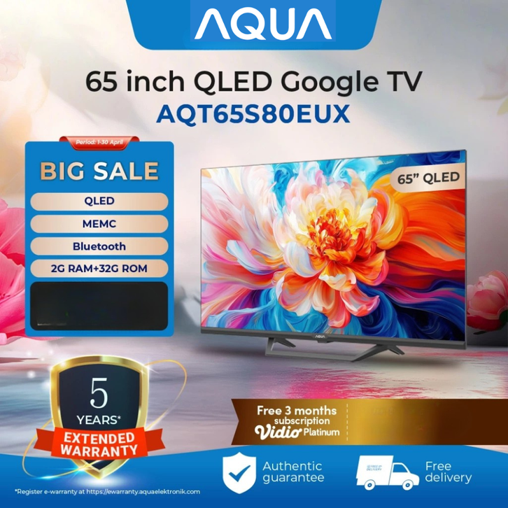 GOOGLE TV AQUA 65 55 43 40 INCH AQT65S80EUX QLED 4K HDR RAM 2GB 32GB DIGITAL AI SMART TELEVISI BESAR ELEKTRONIK MURAH