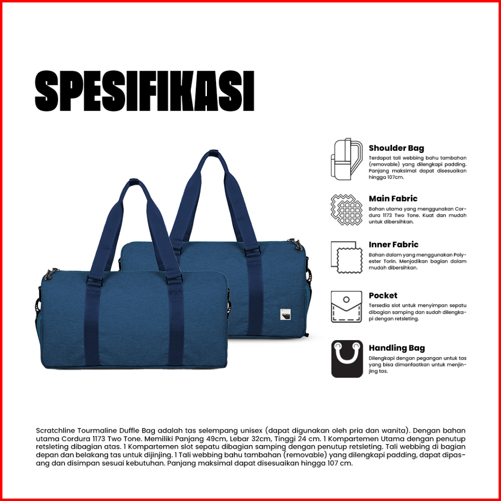 Scratchline Tourmaline Duffle Bag Navy Blue Tas Travel Unisex