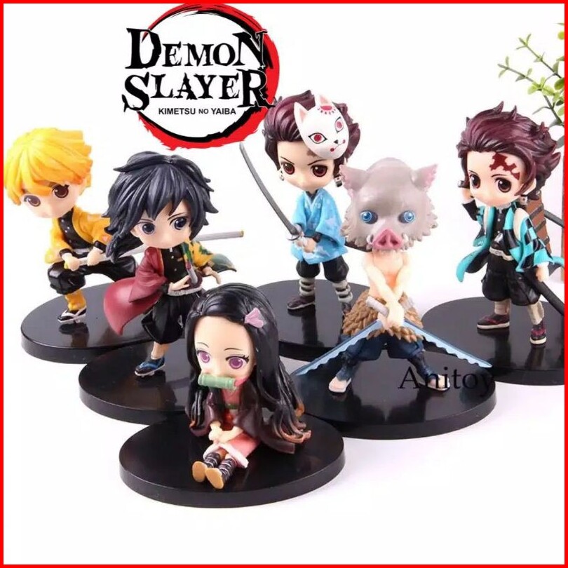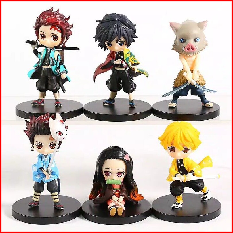 Tanjiro, Nezuko, Giyuu, Zenitsu, Tanjiro biru, Inosuke, Nezuko berdiri, Harga 1 set