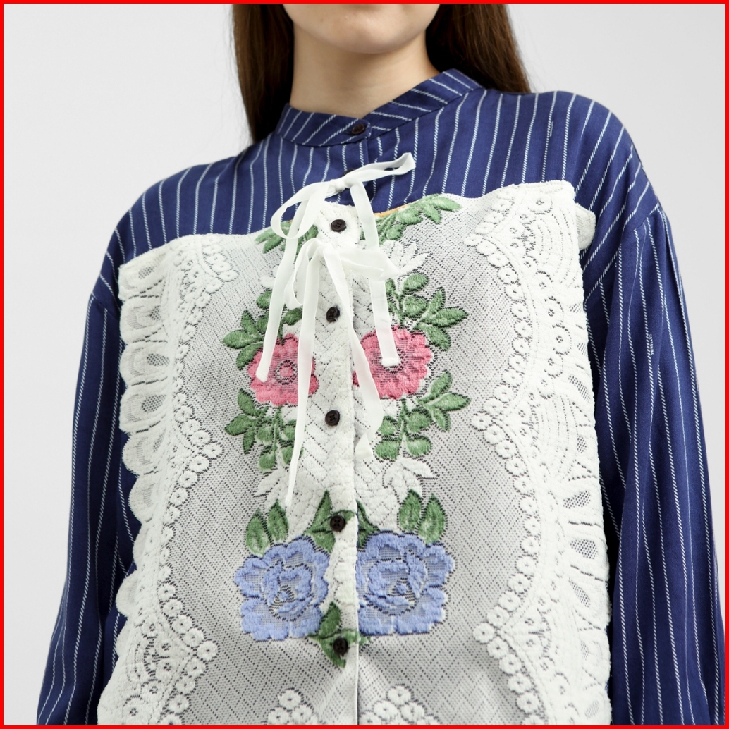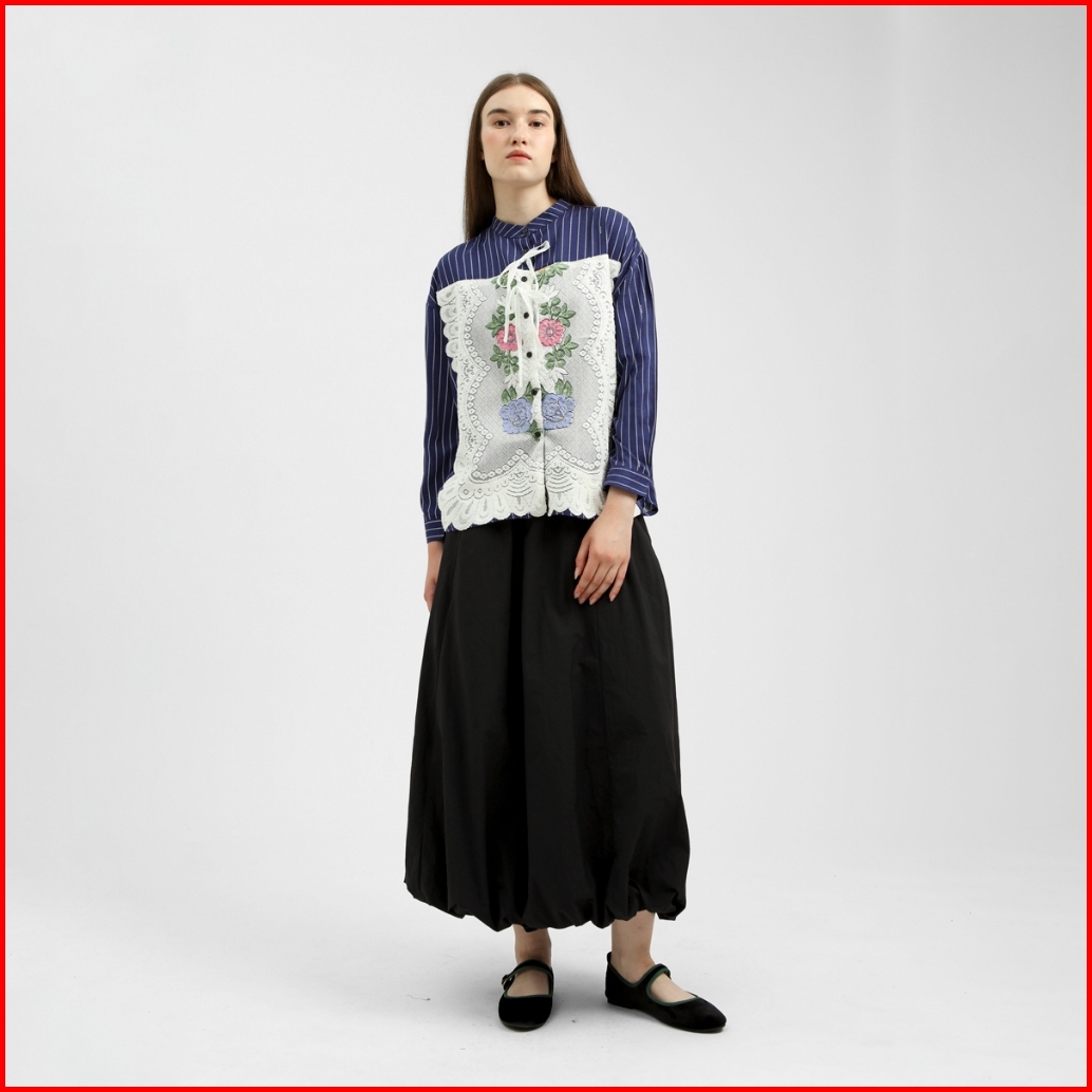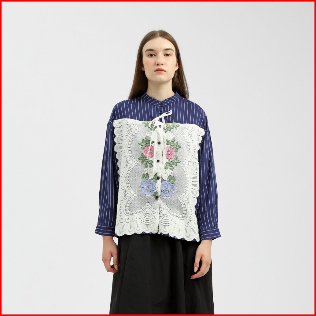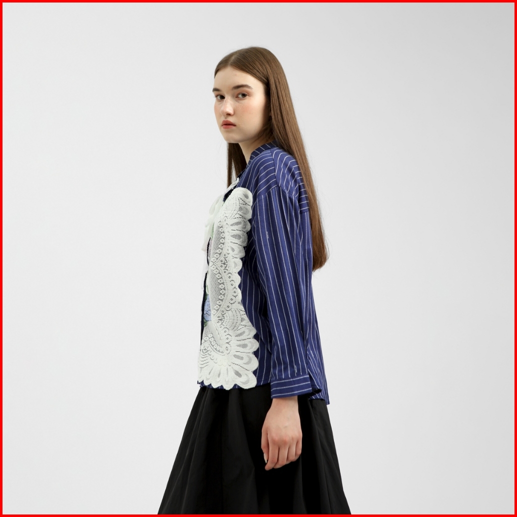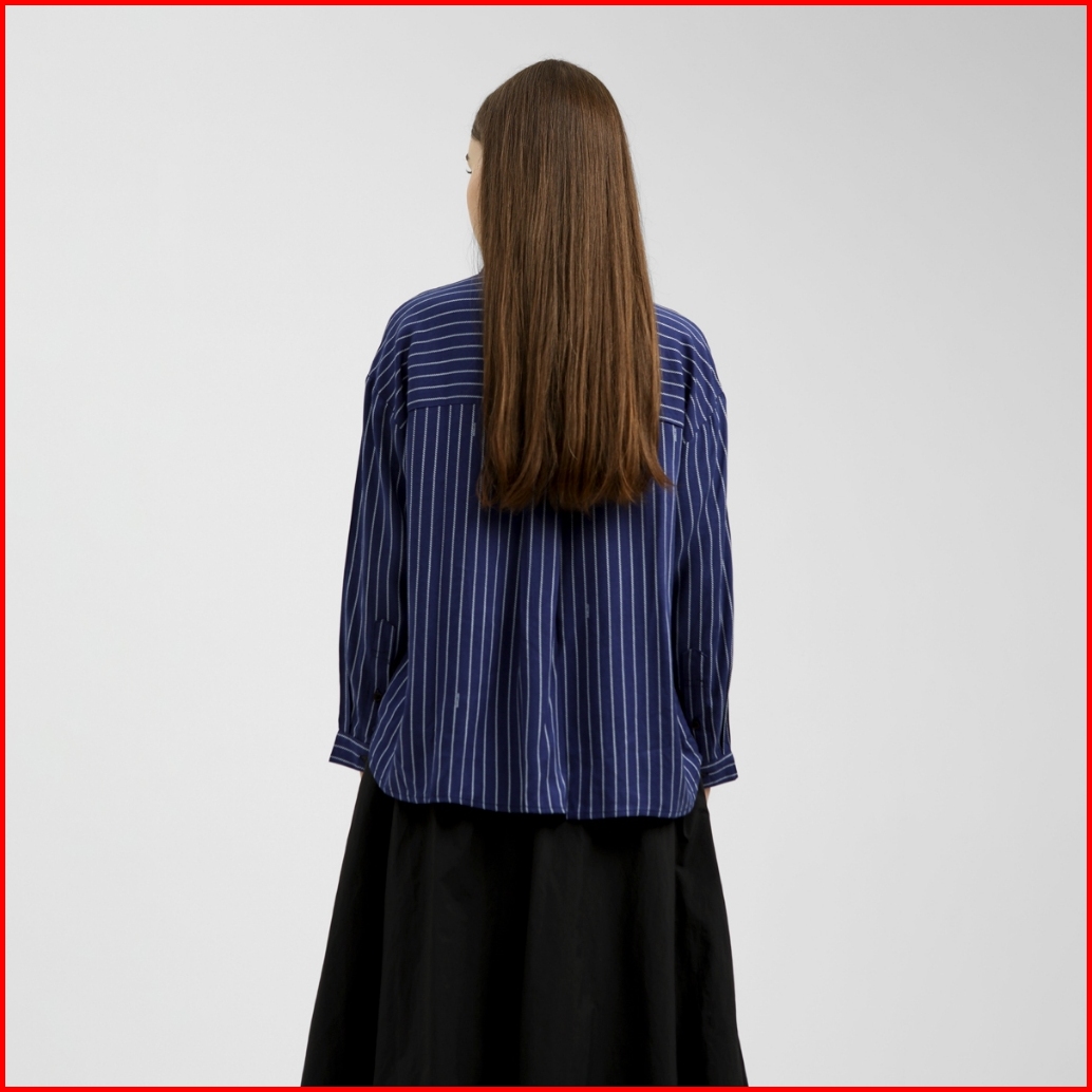 Cottonink - Atasan Kemeja Wanita Navy Blue Striped Babette Backinstock