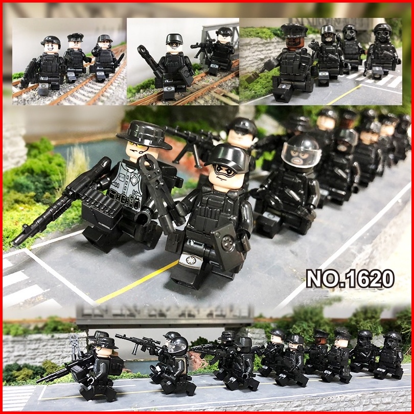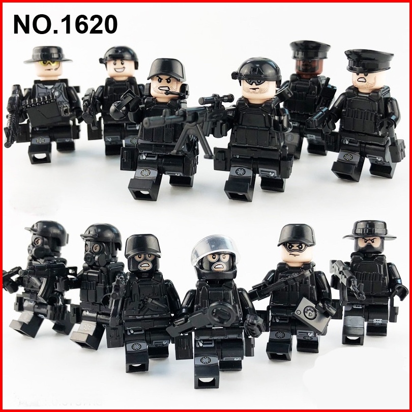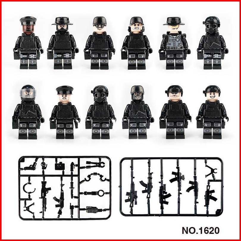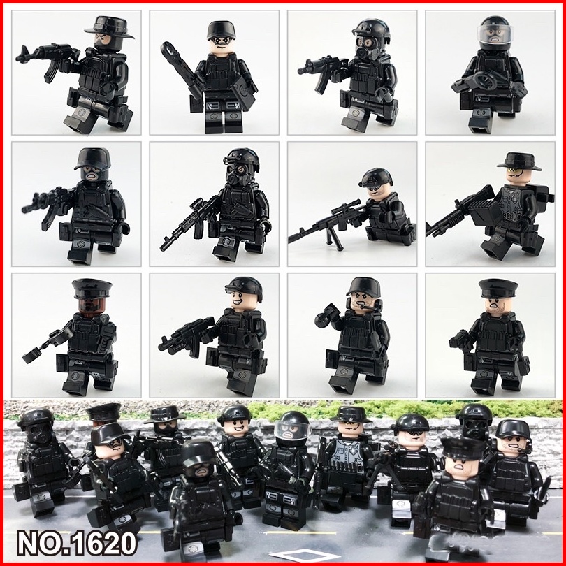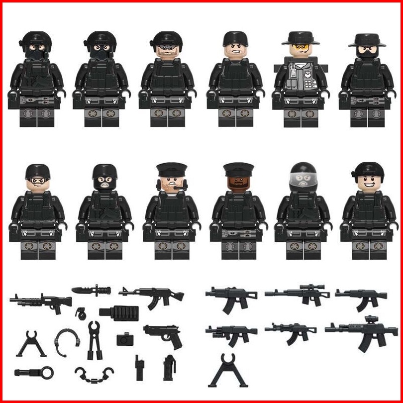 12pcs Mini Figure Mainan Anak Bricks Mini Figure Bentuk Militer Swat Untuk Anak
