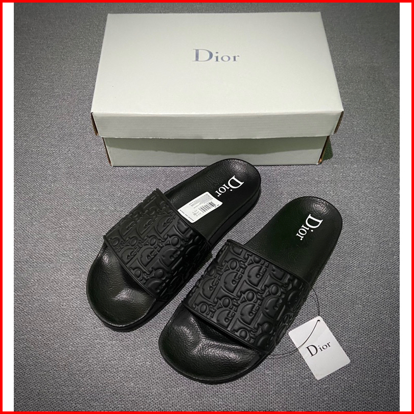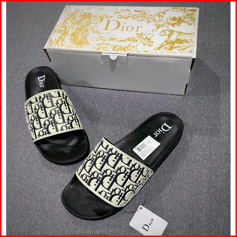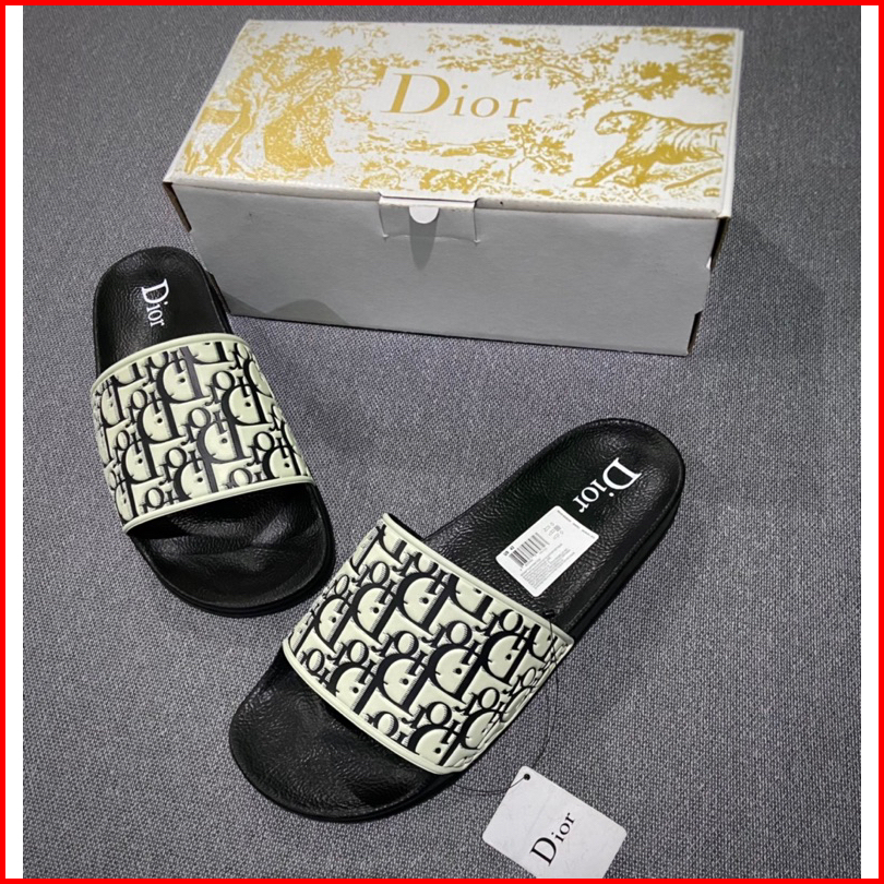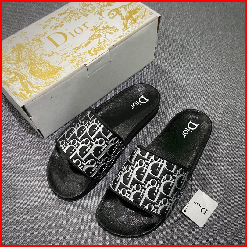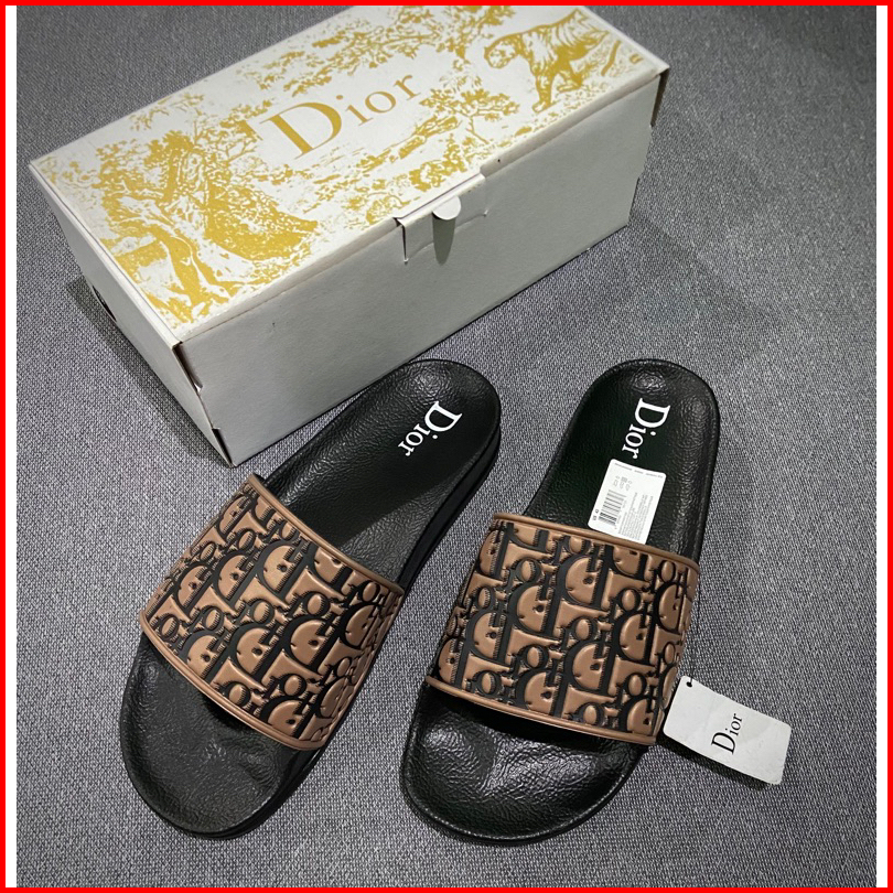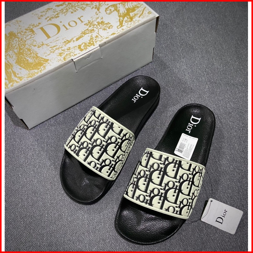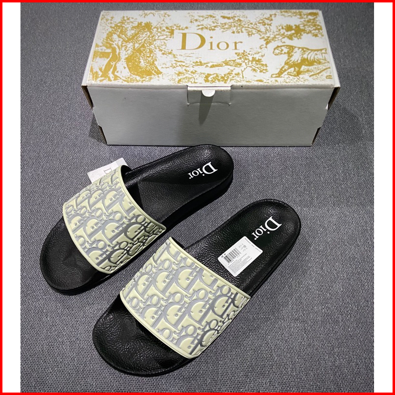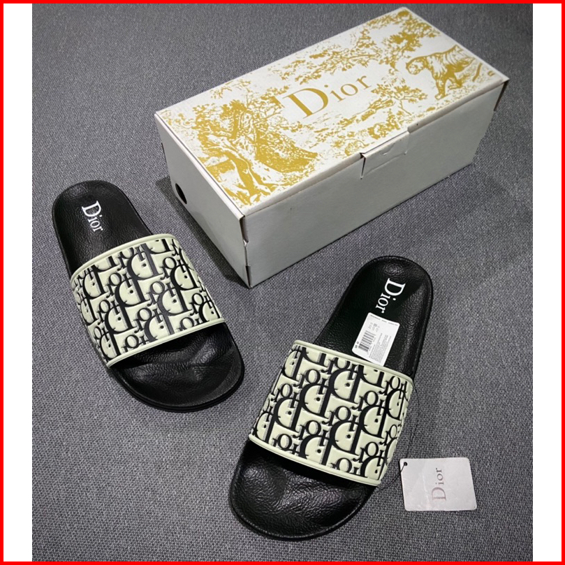 Sandal Slip-on Premium D Motif Embos Crem Silver Free Boxs