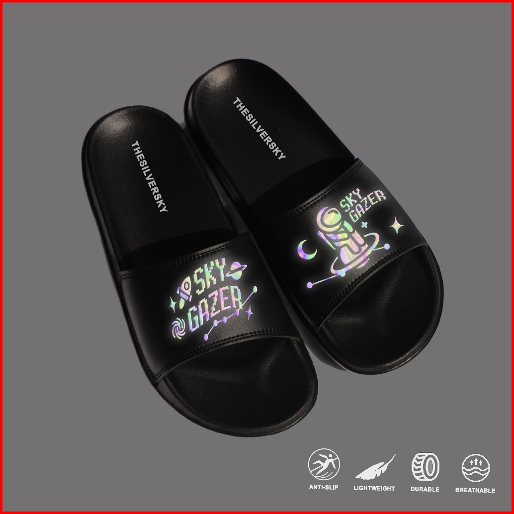 Thesilversky Skygazer Reflective Rainbow Sandal Slide Premium Sendal Slip On Reflektif Space Galaxy